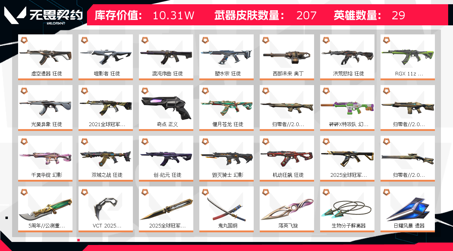 遇冻结,请点击【号主协助】,会尽快解冻! 快到期又无法完成对局的请及时【续租】,到期未完成对局会造成挂机,造成封禁的永久拉黑! 请文明游戏,禁止开挂,炸鱼,挂机,逃跑,因上述行为导致封禁的永久拉黑! 喜欢本账号的可以加收藏!方便下次租号,感谢老板的惠顾!;西部未来 奥丁,5周年//公测重制版 苍龙之刃,VCT 2025 爪刀,天界神兵//2.0 幻影,盖亚的复仇 狂徒,虚空遗器 狂徒,洪荒怒焰 狂徒,