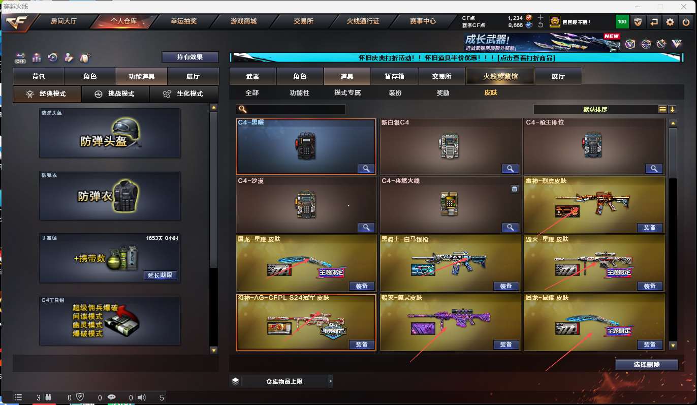 【亮点解析 幻神三件套 98k星神三件套 裁决三件套 爆破武器齐全 生化高质量 手呛近战种类齐全 附带火影】 【传说星骇+圣谕】 【m200-幻神+音效卡+ag24冠军+电流骇客+荣耀世冠白鲨+星火小队+幻神-青鹤+cfs2022】 【竞技荣光套】 【98k星神+音效卡+璀璨】 【王者星神】 【g36c幻影】 【scar白虎+音效卡】 【qbz金色蔷薇+音效卡】 【生化 6炼狱 6烈龙 迷你小刚 蝴蝶 蝴蝶刀】 【裁决+音效卡+巅峰荣耀】 【毁灭+音效卡+星耀】 【极光+音效卡】 【火麒麟+音效卡+火麒麟-呛娘+毁灭-荣耀之怒+火麒麟-even+火麒麟-冠军之心】 【麒麟】 【黑龙】 【雷神+音效卡+烈虎+雷神-荣耀世冠ag+雷神-lgd18冠军】 【黑骑士+音效卡+黑骑士-马超】 【王者之魄 王者之势 王者龙血 王者之光】 【无影 黑武士 天启】 【19手呛 修罗*4 天神*2 usp神工天巧 cop堕天神 cop幻灵 usp神工天巧 王者之灵*2】 【22近战 屠龙*2 龙啸 麒麟刺*2 斩神刀雷暴 幻灵之锋 炽芒蝶刃蝴蝶刀+荣耀世冠2023+冠军炽芒 王者之啸*2 王者之击 王者之刺 王者冰锋】 【手雷 雷暴雷*3 夜魔雷*3 幻灵雷 竞技荣光 神工天巧】 【四防 王者春 王者葵貂蝉 王者零国色天香 王者魅影 王者葵惊若翩鸿 王者玲珑小乔 王者鹰 王者炫】 【幻神音效卡 98k星神音效卡 裁决音效卡】;USP-雷暴,柯尔特-荣耀世冠白鲨2023,炽芒蝶刃,传说星骇,隼,电竞教官-云悠悠,RPK-盘龙,