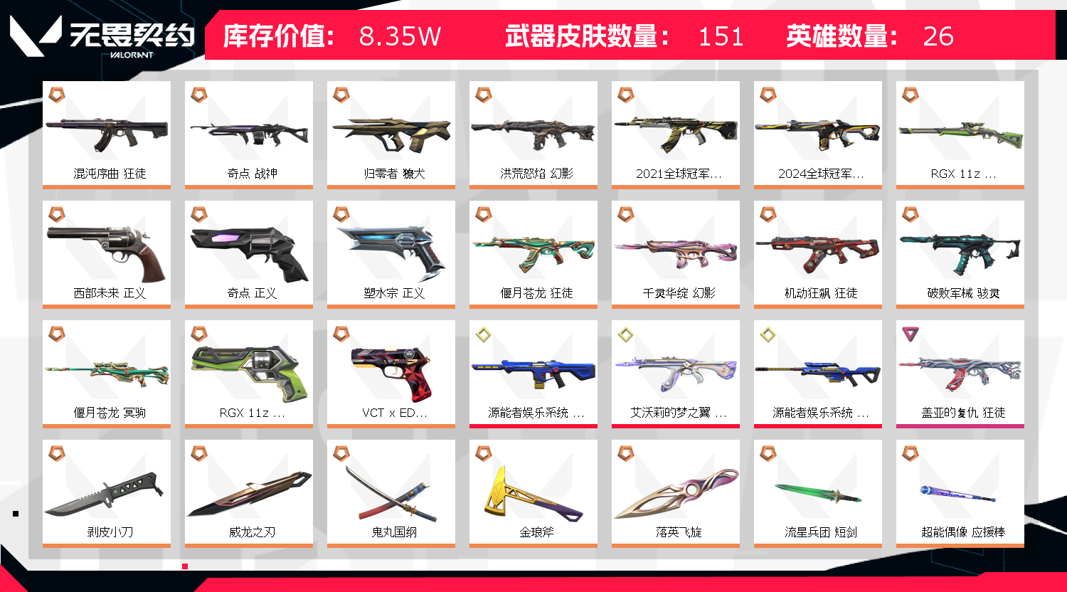 • 武器皮肤数量: 151