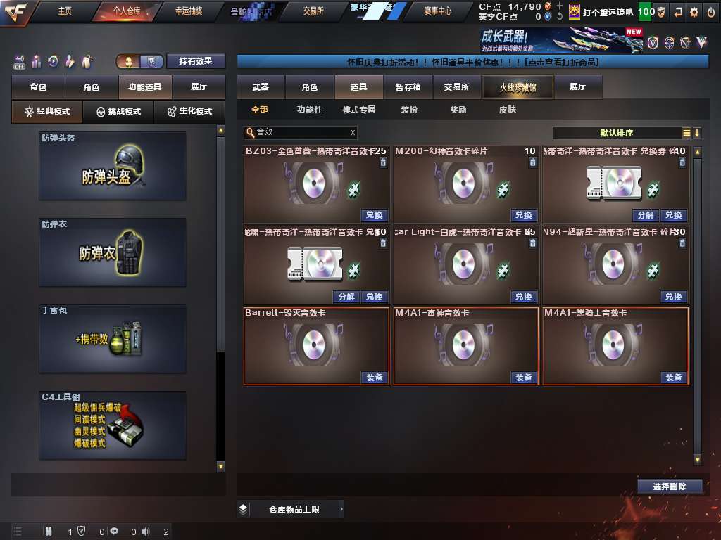 幻神,竞技荣光全套,QBZ金色蔷薇,云悠悠,USP雷暴,双柯尔特竞技荣光,六猎龙,双盘龙双烈狱,千变,双雷神带皮肤音效卡,黑龙带皮肤,黑骑士带音效卡,无影带皮肤,死神,黑武士,双天启复制,王者之武觉醒,王者之势觉醒,天龙带皮肤,毁灭音效卡带皮肤,激光,裁决带皮肤,双沙鹰修罗,三沙鹰天神,双屠龙,龙啸,擎天,三麒麟刺,幻灵之锋,擎天竞技荣光。