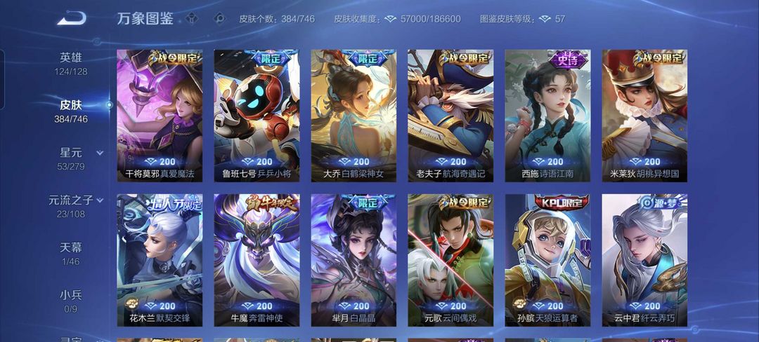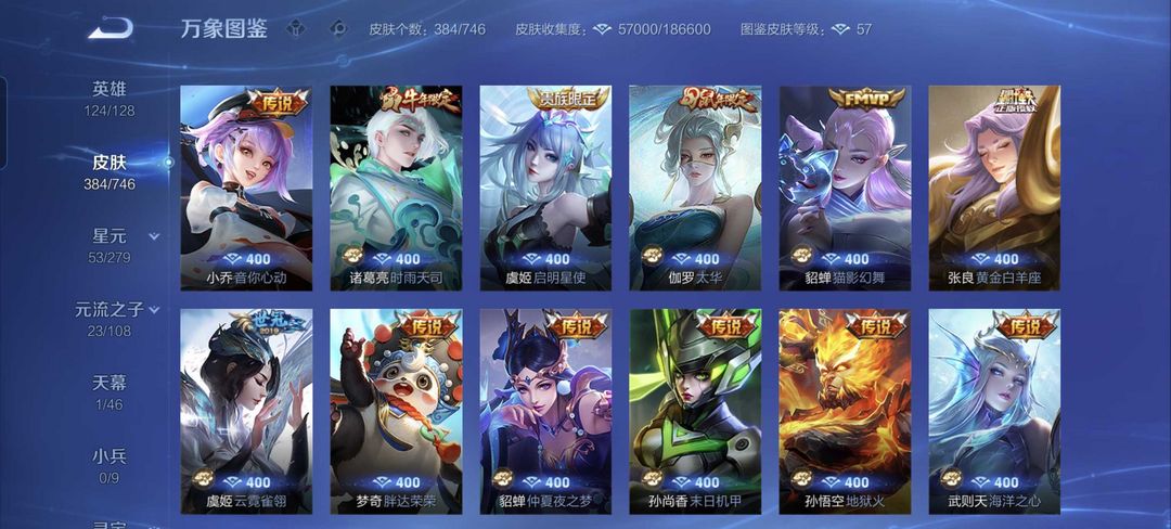 【非云直上】537满皮满典藏12星元◎鲁班新皮◎虞姬星元◎天使星元◎白金战神◎妲己绝版星元