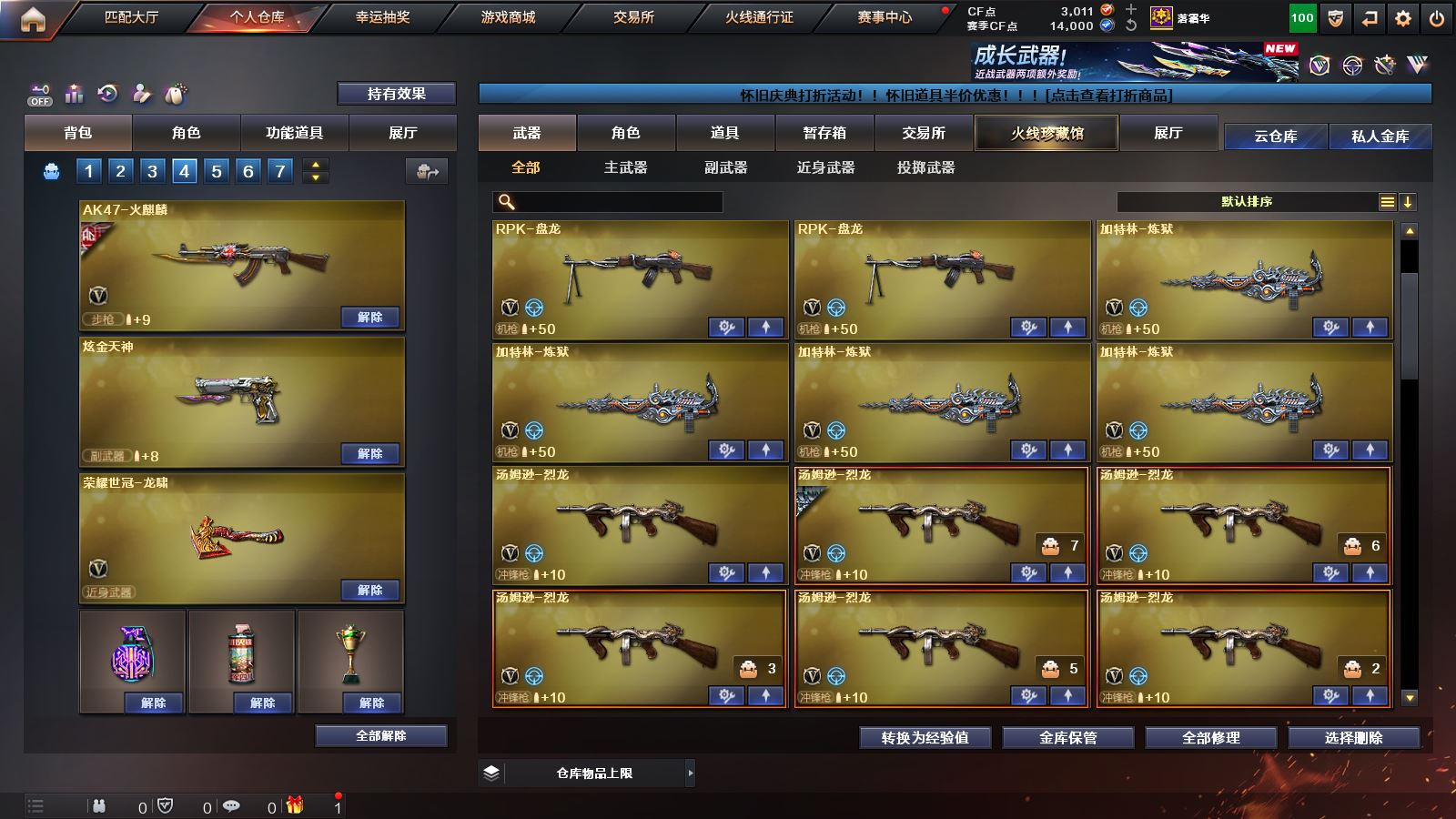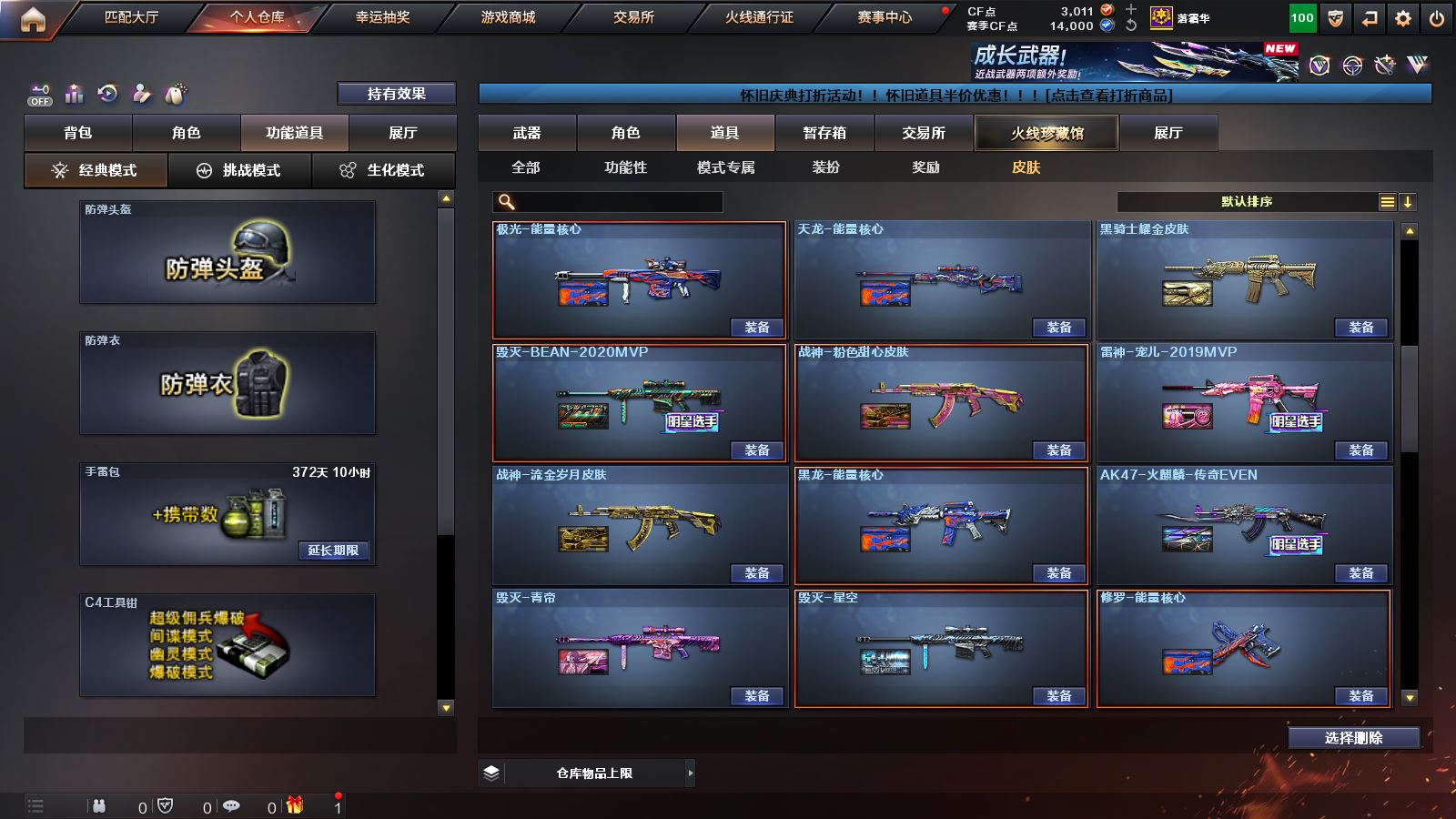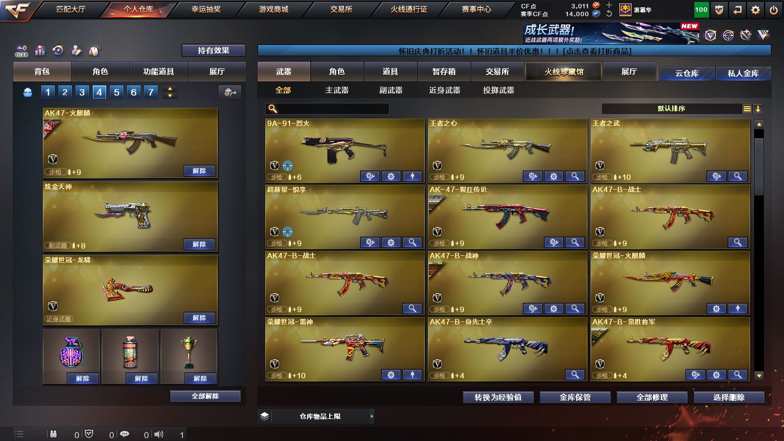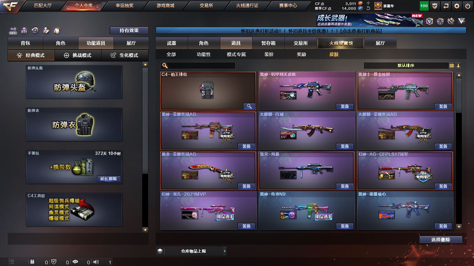 【幻神三件套!!!】 【M200幻神+幻神音效卡+宠儿皮肤+AG皮肤】【98k星神】【传说梦魇】【6烈龙+4炼狱+2盘龙】 【白虎+白虎音效卡】 【qbz03金色蔷薇】 【荣耀世冠套装】 【王者炎性 王者之心 王者之翼 王者冰魄 王者之魄 王者之武 王者之力 王者之怒】【雷神+雷神音效卡+荣耀之魄皮肤+传奇N9皮肤+宠儿皮肤+冠军之魄皮肤+荣耀之冠AG皮肤】 【火麒麟+传奇EVEN皮肤+荣耀世冠AG皮肤】【毁灭+毁灭音效卡+荣耀之怒皮肤+2020MVP皮肤】 【黑龙 黑骑士 无影 死神 天启 武圣 机械迷城 青龙 朱雀 qbz03独角III 玫瑰精灵 猎神 9A91烈火 超新星悦享 猩红传说 战士 战神 身先士卒 常胜将军 极光 裁决 巴雷特金色蔷薇 巴雷特暗月传说】——【沙鹰修罗 沙鹰天神 荣耀世冠柯尔特】——【屠龙 龙啸 擎天麒麟刺 战神刀雷暴 王者之锋 王者之啸 王者之击 荣耀世冠龙啸】——【雷暴投掷武器套装 雷霆王者投掷武器套装】——【热门武器/小人枪】【苍鸣雷神 青龙掌上穿越火线 火麒麟灵狐 炫金黑龙 炫金雷神 炫金骑士】——【角色】【4防(王者春 王者葵貂蝉)】;