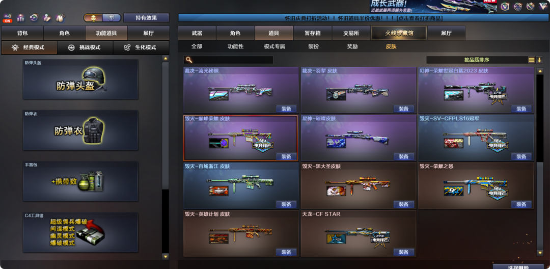 香妮妮4传说白鲨ep世冠套玄豹套usp冥王雷神qbz星神天罚毁灭皮肤各种音效卡 轮椅枪幻影天戎银翼