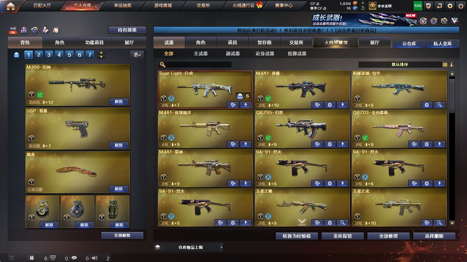《传说光耀/传说暗裔》 《绝版幻兽套》《m200幻神》《裁决+凤灵》《usp雷暴 沙鹰幻兽 柯尔特电竞装甲 破空枪刃 cop旗袍 1911大黄蜂》《雷暴套》《白虎》《朱雀》《王者冰魄/炎心》《qbz金色蔷薇》《烈火》《毁灭》《5盘6烈 斯泰尔蝴蝶》《m37葵》《王者瞳闭月羞花 灵狐者职业经理 职业选手》《xrock炫彩背包 超级背包》《雷神音效卡 黑龙音效卡 毁灭音效卡 黑骑士音效卡 极光音效卡 火麒麟音效卡》《雷神宠儿 毁灭荣耀之怒》《a背包套装扩展券》;USP-雷暴,RPK-盘龙,QBZ03-金色蔷薇,M200-幻神,Scar Light-白虎,传说暗裔,