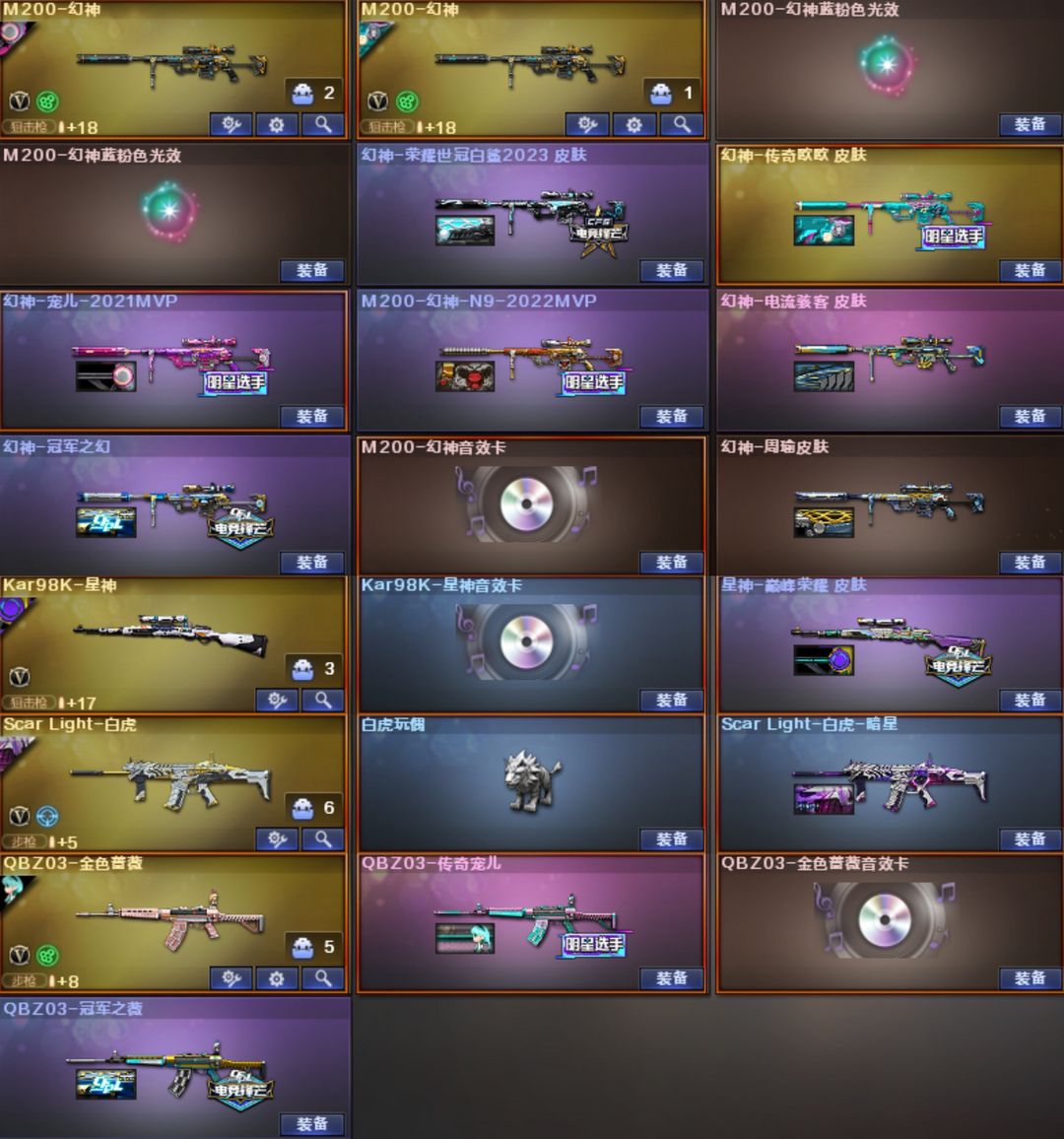 幻影幻神音效卡欧欧宠儿白鲨7皮⭐星神音效卡巅峰荣耀⭐QBZ卡宠儿冠薇⭐2冠特2雷暴⭐白虎暗星裁决异化