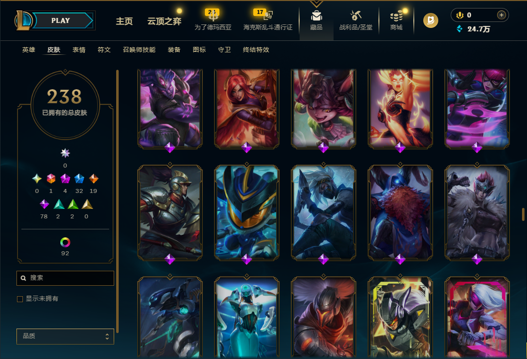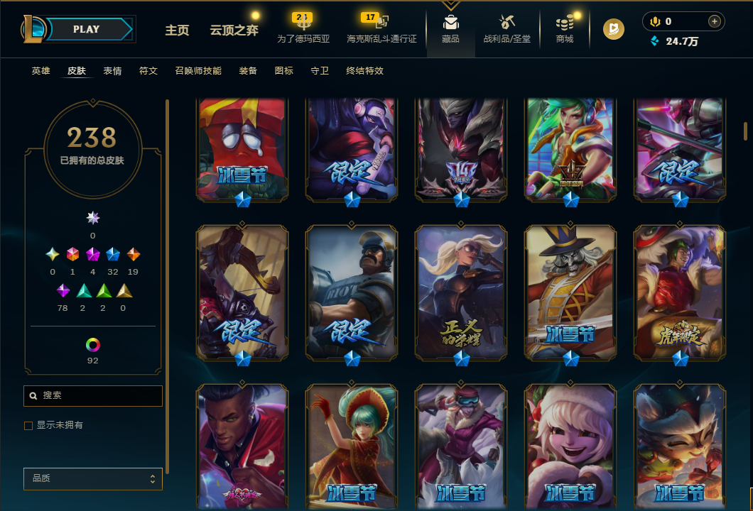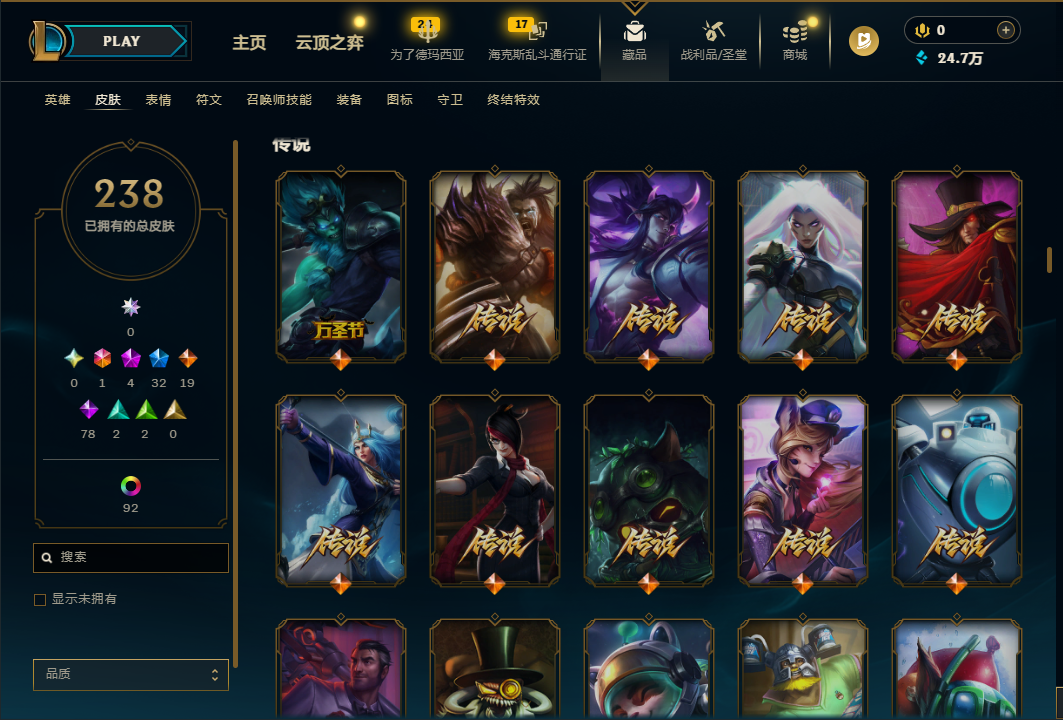 真实2031皮/89神话/龙瞎+蓝炫/哥特萝莉/龙猴+龙刀+龙琴/情人节全套/原计划全套/IG冠军限定/FPX冠军限定/200多限定/每个英雄都有全有/看图