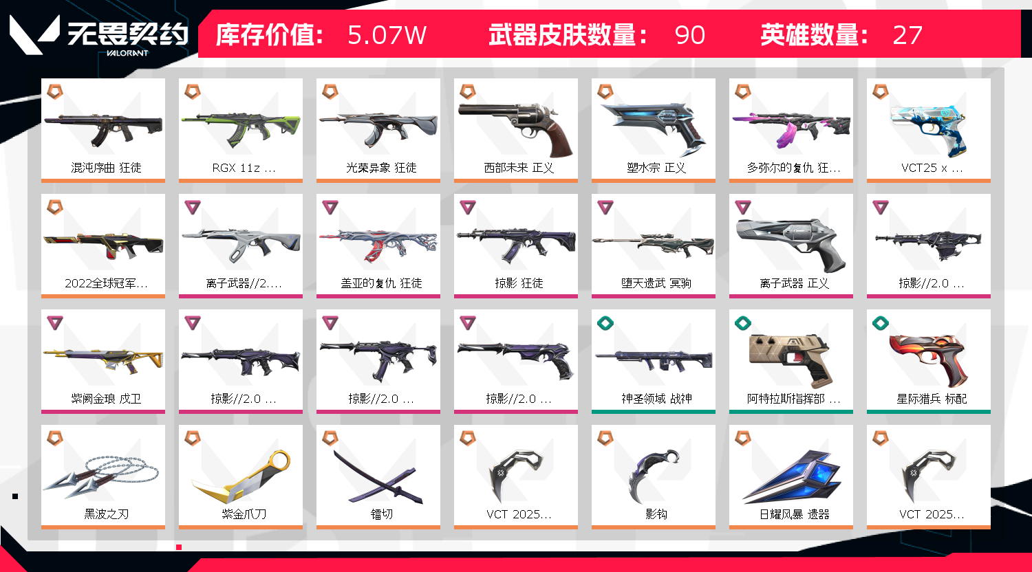 • 皮肤资产价值: 50680