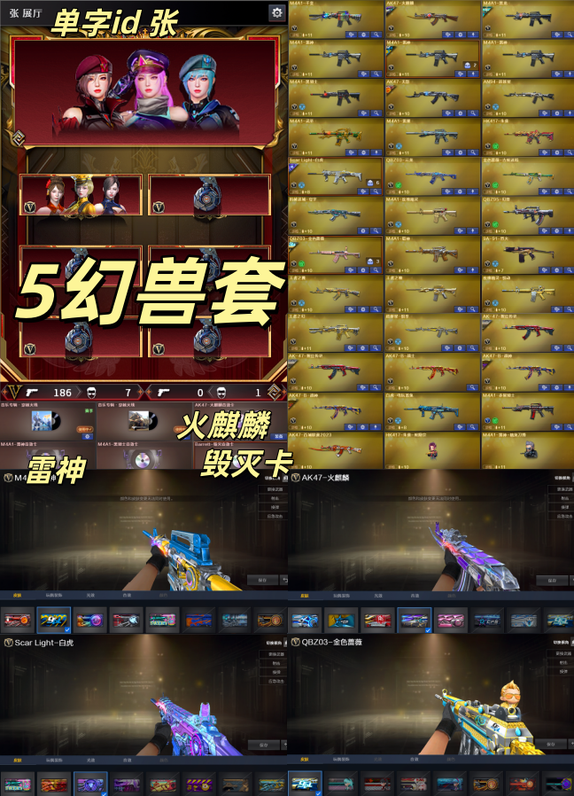 5幻兽套♥单字id张♥幻神星火宠儿白鲨♥冠军蔷薇♥满副手2冠特♥裁决巅峰白虎霓虹♥6烈龙