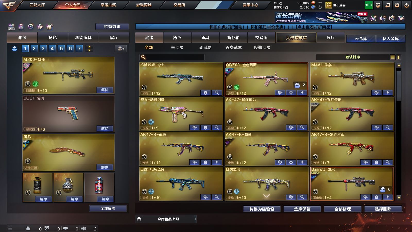 【幻神四皮三件套!!!】【传说武器+传说角色】【M200幻神+幻神音效卡+宠儿皮肤+电流骇客皮肤+荣耀世冠白鲨皮肤+黄忠皮肤+4防传说艾莉莎】【传说辉光】【白虎+冠军之虎皮肤+白虎之魄皮肤】 【qbz金色蔷薇+荣耀世冠白鲨皮肤】【云龙套装】【火麒麟+火麒麟音效卡+大唐荣光皮肤】【雷神+雷神音效卡+冠军之魄皮肤+宠儿皮肤+cfpls18冠军皮肤】【黑骑士+黑骑士音效卡】【毁灭+荣耀之怒皮肤+cfpls15冠军皮肤】【天启 超新星 黑鲨 无影神兵利器 源雷神III 穹宇 猎神 烈火动感闪耀 猩红传说 战神 常胜将军 AA12雷霆】——【沙鹰修罗 沙鹰天神 天神动感闪耀 cop357云龙】——【屠龙 擎天 麒麟刺 屠龙动感闪耀 云龙扇 雷霆王者之锋 龙啸烈火龙威】——【幻灵投掷武器套装*3 神工天巧投掷武器套装 云龙投掷武器套装 雷霆王者投掷武器套装】——【热门武器/小人枪】 【苍鸣雷神 天龙曼陀罗 cop白鲨 黄金猫猫手套白鲨 AWM灵狐小人枪】——【角色】【4防(传说艾莉莎 王者潘多拉 隼 王者涂鸦 王者炫 职业经理)】【关小雨 瞳】;隼,传说艾莉莎,QBZ03-金色蔷薇,M200-幻神,Scar Light-白虎,