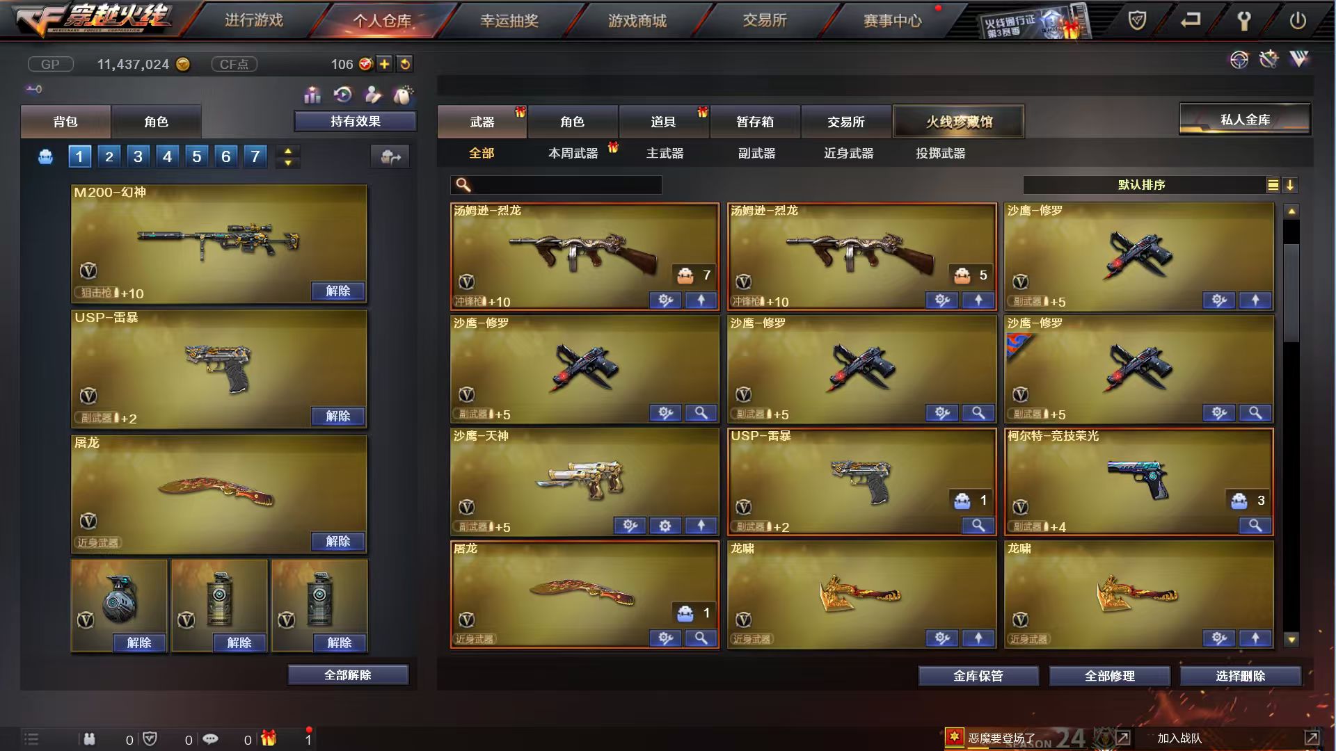 85VM200幻神音效+黄忠98K星神经济荣光套7手枪USP雷暴云悠悠4音效