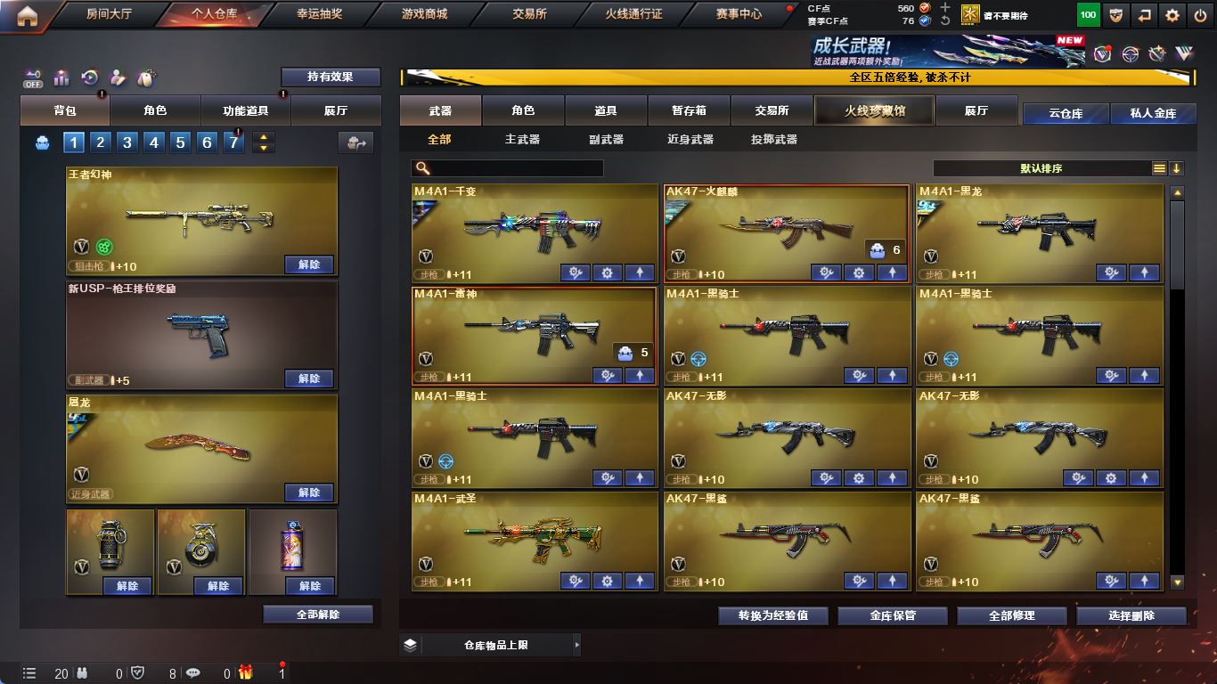 【竞技荣光套+四防云悠悠+usp雷暴】 【王者幻神】 【王者白虎】 【QBZ03-金色蔷薇+heartshot+破浪逐光+量子蔷薇】 【裁决+流光秘银】 【毁灭+音效卡+heartshot+毁灭-荣耀之怒】 【极光】 【火麒麟+heartshot+毁灭-荣耀之怒】 【黑龙+黑龙-冠军之武】 【雷神+音效卡+heartshot+雷神-传奇n9】 【黑骑士+音效卡】 【王者之心 王者之魄 王者之戮】 【无影 黑鲨】 【7手枪 修罗*4 天神】 【11近战 屠龙 擎天*3 炽芒蝶刃蝴蝶刀+冠军炽芒】 【手雷 雷暴雷 堕天神*2 夜魔*2 竞技荣光*3】 【角色 王者凌霄】;炽芒蝶刃,电竞教官-云悠悠,晴雅,RPK-盘龙,QBZ03-金色蔷薇,
