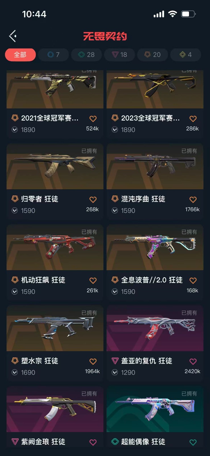 可排位 英雄28 武器皮肤数量103