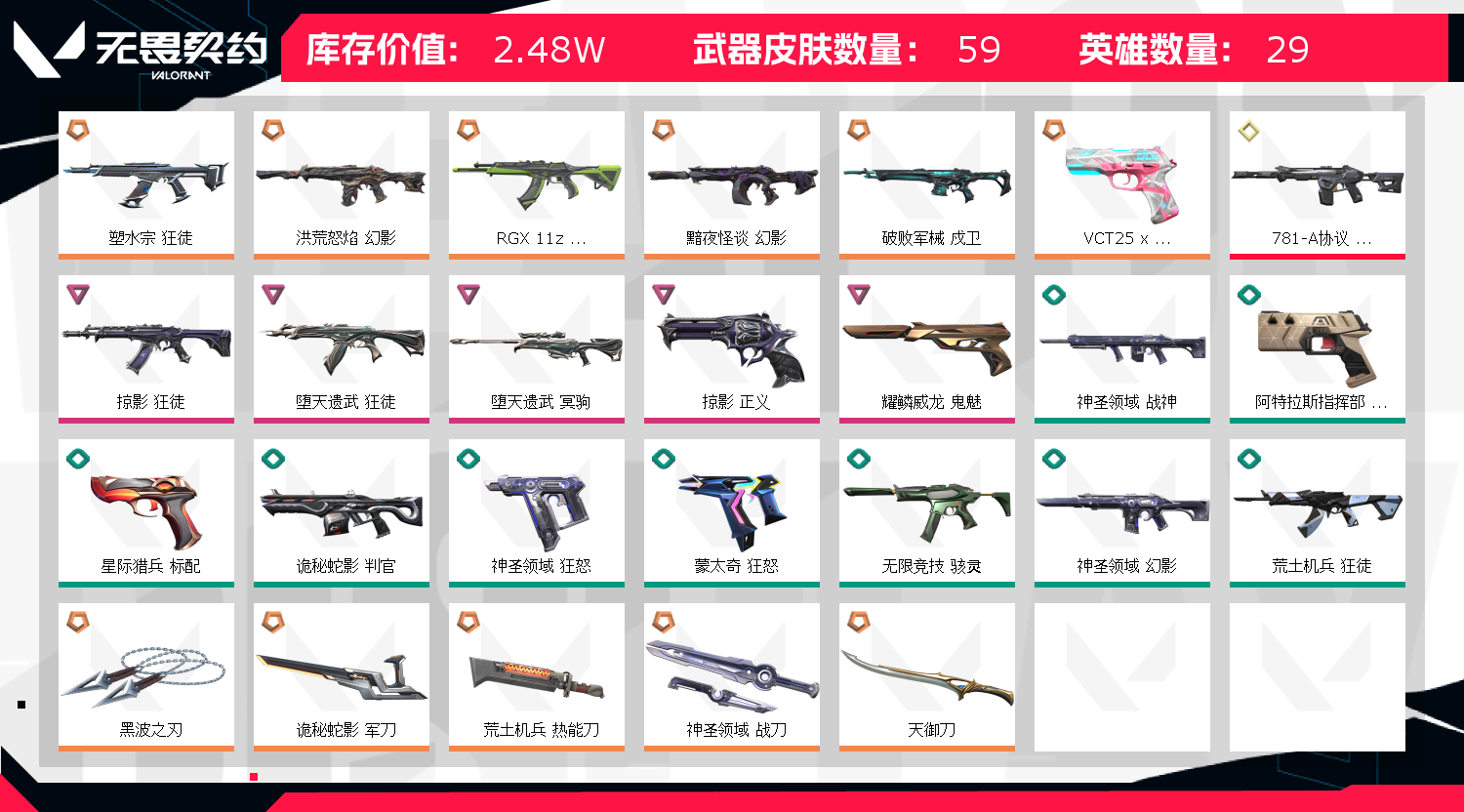• 武器皮肤数量: 59
