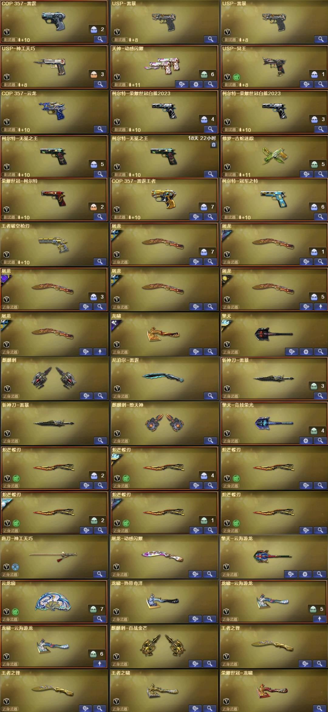 。。。。。;USP-雷暴,柯尔特-无冕之王,荣耀世冠-柯尔特,柯尔特-荣耀世冠白鲨2023,柯尔特-冠军之特,炽芒蝶刃,Knife-冠军之刃,