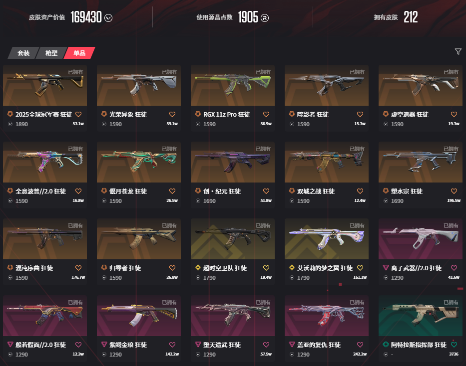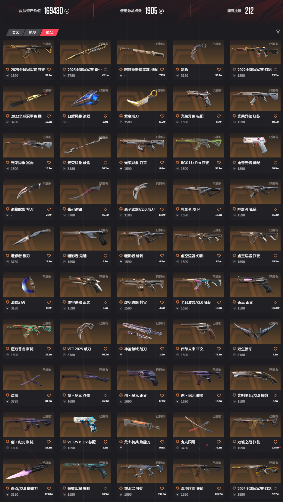 首页 > 租号大厅 > 无畏契约-wegame > wegame/wegame > 秒解冻⇨17w库枪皮多特效拉满⚡光荣套噬影套虚空套纪元套假面套离子套千灵套22/24/25冠军套龙刃