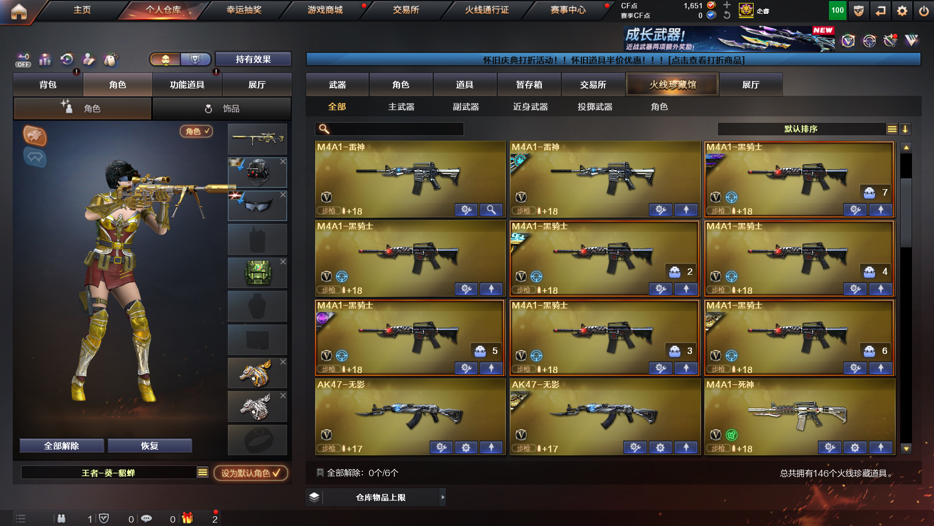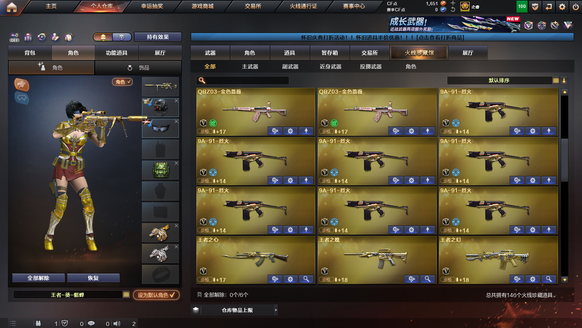 首页 > 租号大厅 > 穿越火线 > 电信区/陕西一区 > 146v传说光耀+觉醒王者幻神+雷神某牙皮+生化6盘6烈7黑骑蔷薇裁决王光+毁火雷黑音赛事皮肤全