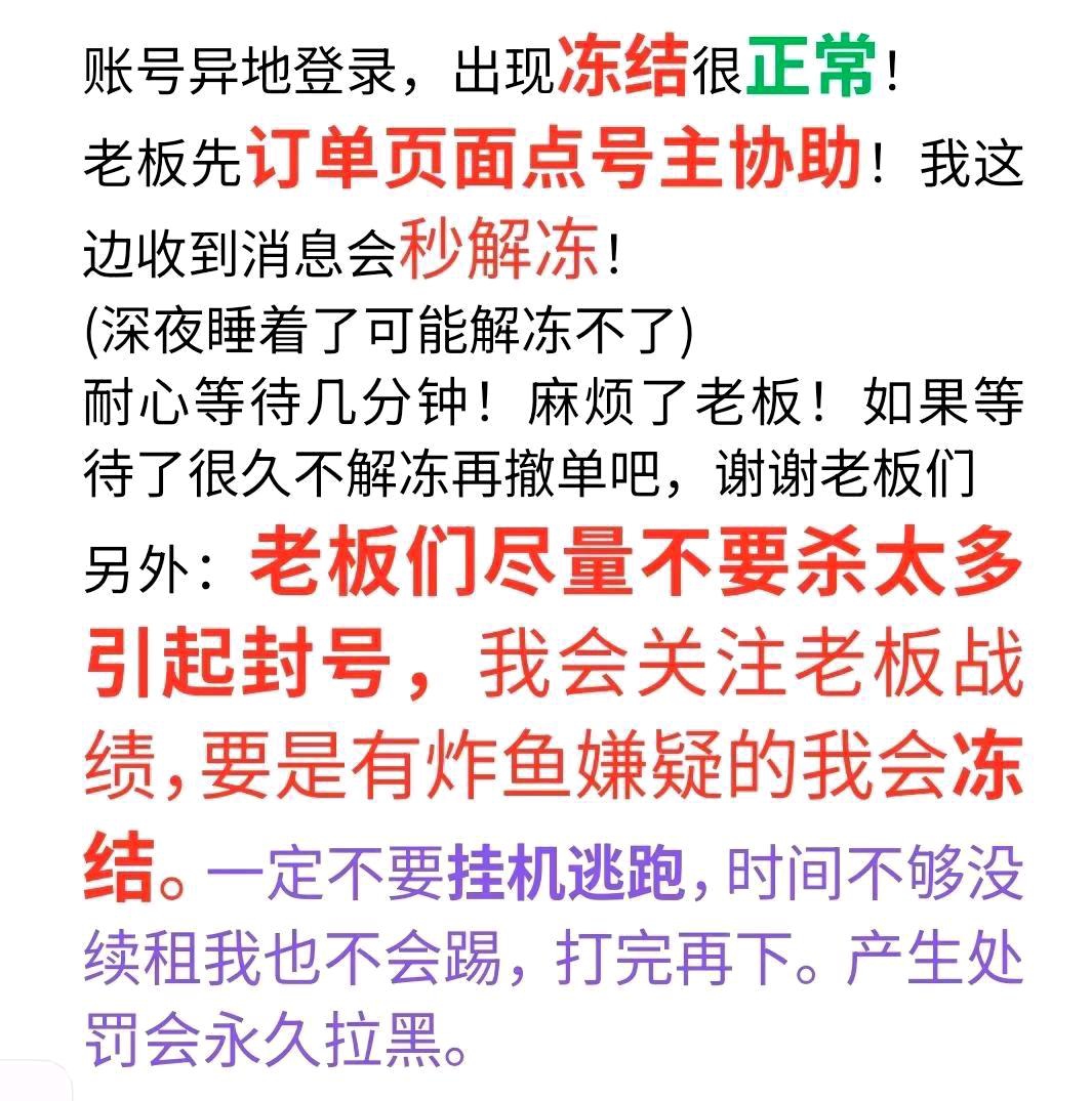 • 租号押金:0.0(订单结束后24小时退还)