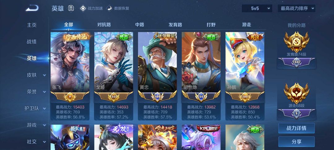 极品富婆号 693皮肤 满荣耀水晶无双贵族 74发育68辅助 女孩子玩的英雄都有标