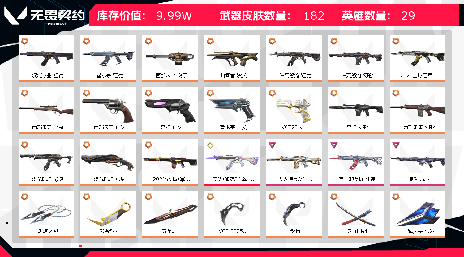 ❤️❤️❤️账号库存价值较大,已做大额虚拟资产备案,开挂盗号等行为报案处理,请不要以身试法。 ❤️❤️❤️禁止游戏内挂机违者拉黑公示,喜欢本账号请点收藏★方便下次租用,谢谢光临惠顾!❤️❤️❤️账号库存价值较大,已做大额虚拟资产备案,开挂盗号等行为报案处理,请不要以身试法。 ❤️❤️❤️禁止游戏内挂机违者拉黑公示,喜欢本账号请点收藏★方便下次租用,谢谢光临惠顾!❤️❤️❤️账号库存价值较大,已做大额虚拟资产备案,开挂盗号等行为报案处理,请不要以身试法。 ❤️❤️❤️禁止游戏内挂机违者拉黑公示,喜欢本账号请点收藏★方便下次租用,谢谢光临惠顾!;西部未来 奥丁,黑波之刃,紫金爪刀,威龙之刃,VCT 2025 爪刀,天界神兵//2.0 幻影,归零者 獠犬,