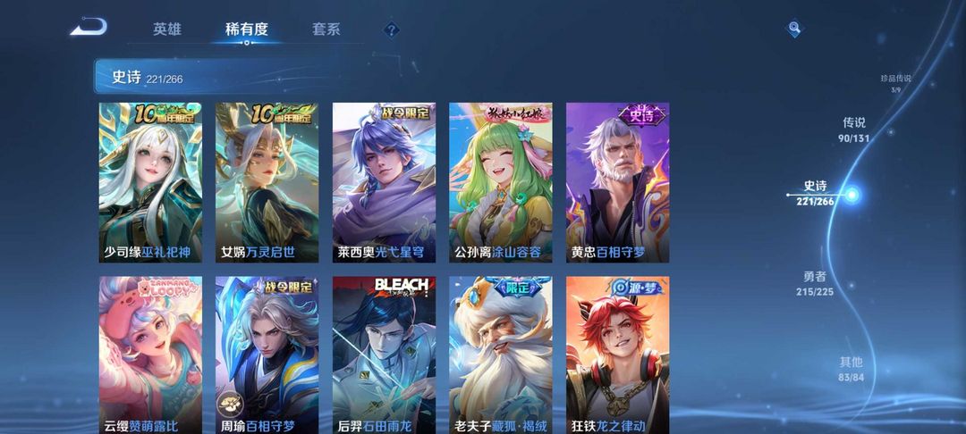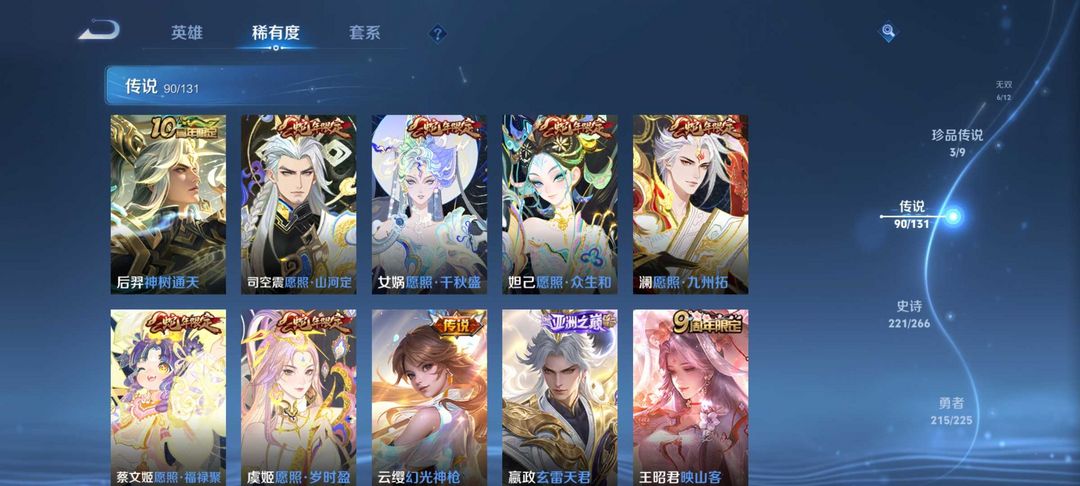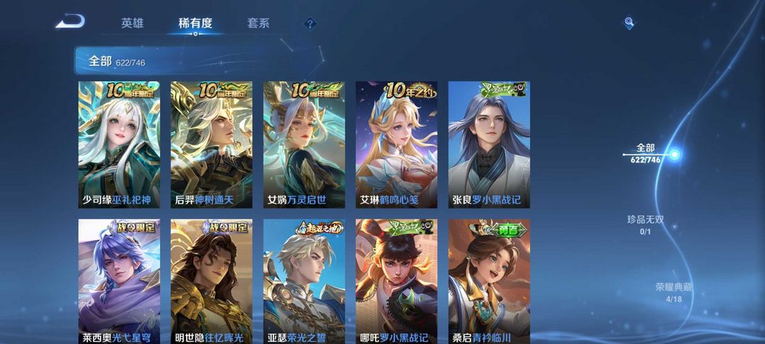 V10 622皮90传说6无双4荣耀典藏三个珍品传说等等精品皮肤热门都有