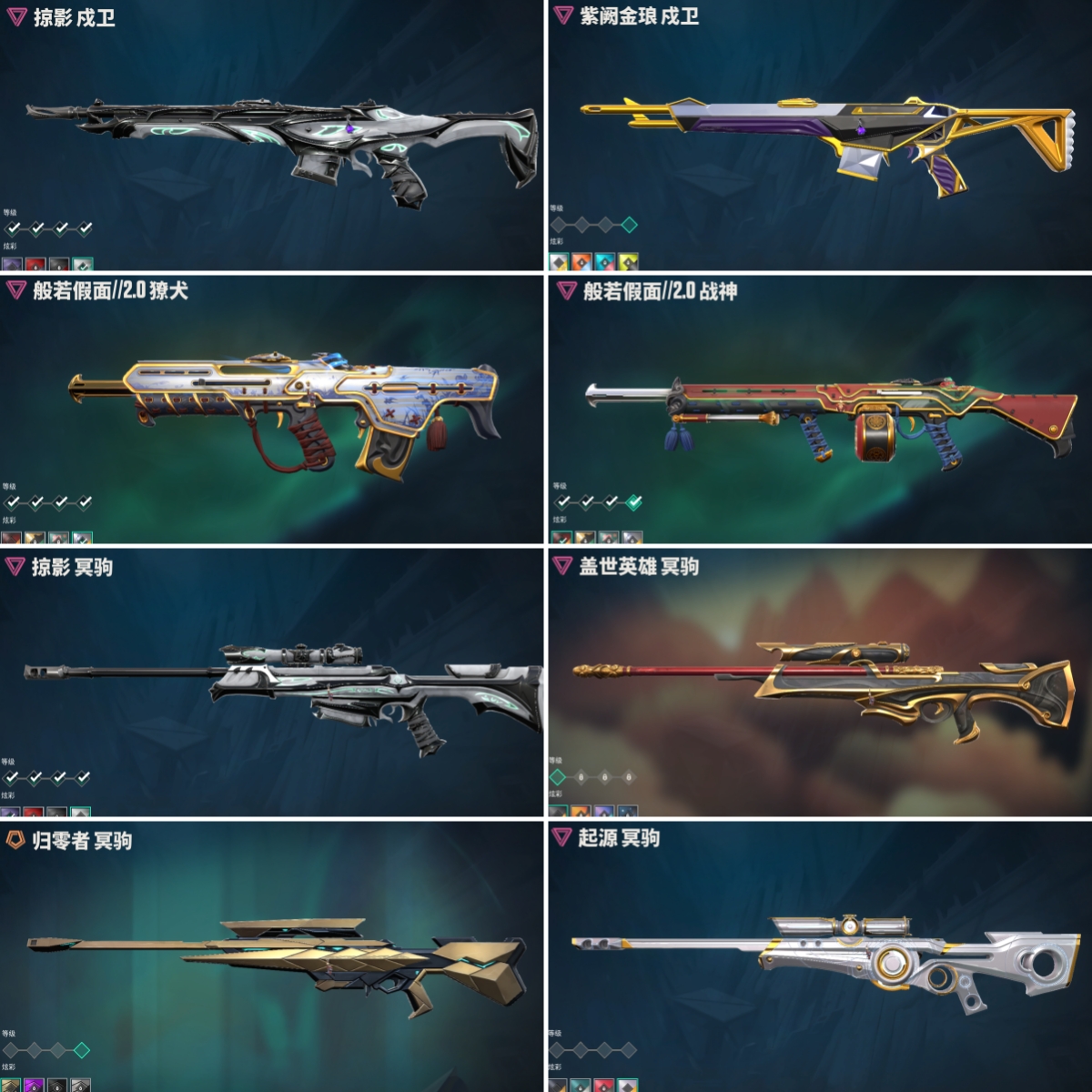 【拥有步枪】RGX-11z-Pro-狂徒,噬影者-狂徒,黯夜怪谈-幻影,塑水宗-狂徒,归零者-狂徒,艾沃莉的梦之翼-狂徒,离子武器//2.0-狂徒,盖世英雄-狂徒,紫阙金琅-戍卫,盖亚的复仇//2.0-幻影,侦察力量-幻影,星际猎兵-幻影,阿特拉斯指挥部-狂徒,日耀风暴-幻影,诡秘蛇影-狂徒,神圣领域-獠犬,神圣领域-幻影,荒土机兵-狂徒,超限闪存-幻影,沙尘幻旅-狂徒,瑰梦艺语-狂徒,光环序列-戍卫,悠闲猫生-幻影,太空穿梭-戍卫,悠闲猫生-獠犬,幻语魔咒-獠犬,甜蜜战术-戍卫,末日之翼-幻影,折光棱晶-戍卫,月球哨兵-戍卫,纳米打-幻影,逆冲蛮牛-戍卫,逆冲蛮牛-獠犬,模拟赫兹-獠犬,浮光跃金-戍卫,萌彩剪影-戍卫,胡桃狂想-獠犬,