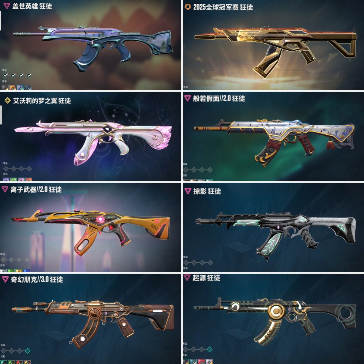 【拥有手枪】VCT25-x-GEN-标配,艾沃莉的梦之翼-鬼魅,天界神兵-鬼魅,星际猎兵-标配,阿特拉斯指挥部-标配,日耀风暴-正义,诡秘蛇影-鬼魅,神圣领域-狂怒,荒土机兵-标配,超限闪存-正义,沙尘幻旅-正义,光环序列-狂怒,瑰梦艺语-鬼魅,太空穿梭-正义,悠闲猫生-短炮,甜蜜战术-鬼魅,幻语魔咒-狂怒,折光棱晶-标配,末日之翼-短炮,星云暗涌-鬼魅,月球哨兵-正义,纳米打-正义,逆冲蛮牛-狂怒,浮光跃金-标配,模拟赫兹-鬼魅,萌彩剪影-狂怒,胡桃狂想-鬼魅,