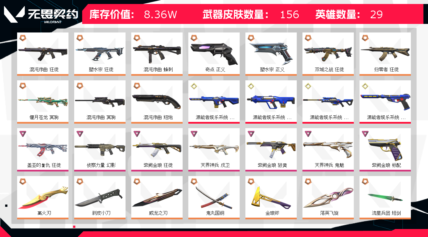 • 皮肤资产价值: 83650