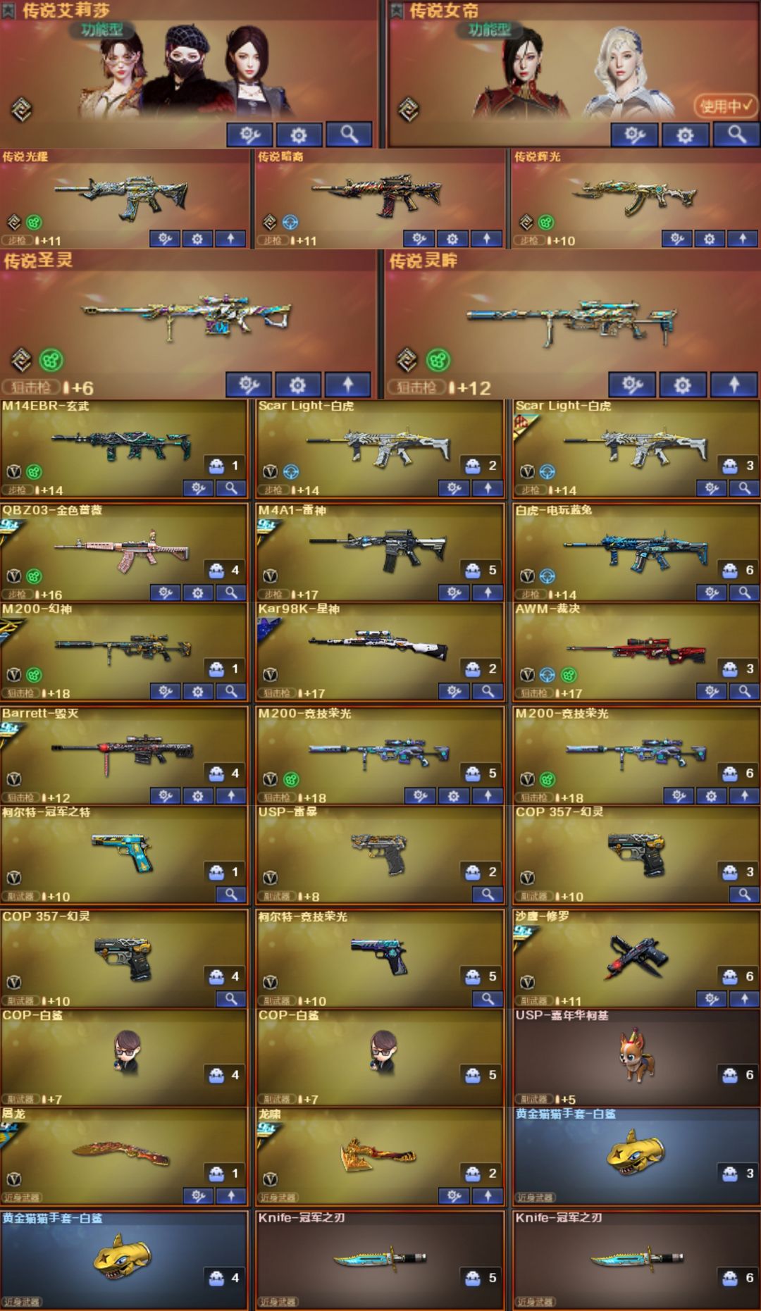 7传说女帝灵眸艾莉莎⭐幻神音效卡2皮⭐星神音效卡璀璨⭐白虎卡AG⭐QBZ卡冠薇AG⭐冠特双冠刃雷暴