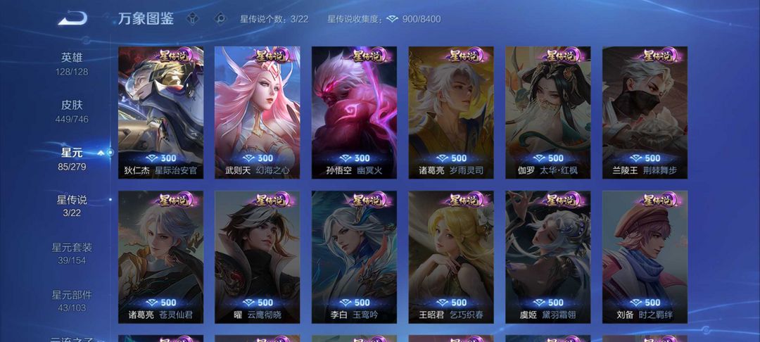 【天花板V10】535满皮满典藏/大乔时之奇旅新皮/虞姬星元/白金战甲/个性按键★多星元部件