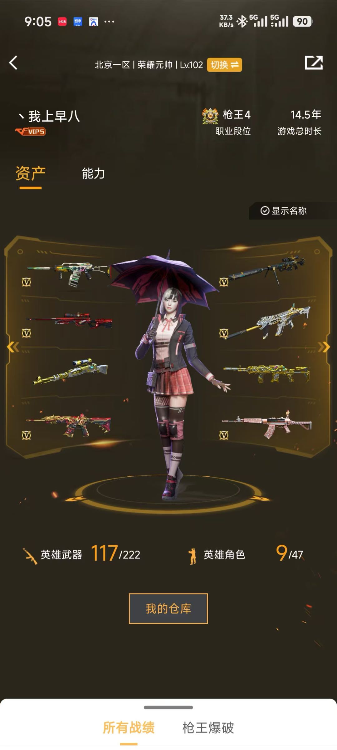 128V,Lv.102 荣耀元帅,0传说/16王者/5炫金/112英雄/【重要角色18】蛇隐宗/王者樱热浪之夏/王者涂鸦/王者瞳闭月羞花/王者葵惊若翩鸿/王者迷迭香/角色-凌霄/角色-樱/角色-炽天使/蜀雪/角色-迷迭香/铁骑荣耀/角色-隼/雅典娜/雨棠/零水下丽影/角色-魅影/角色-空【套装2】夜魔套/古蛇迷踪套/【王者武器10】王者星神-觉醒版/王者蔷薇-觉醒版/王者之力-觉醒版/王者雷怒/王者炎心-觉醒版/王者之势-觉醒版/王者之魂-觉醒版/王者之击-觉醒版/王者之刺-觉醒版/王者之魄高爆手雷【炫金武器5】炫金毁灭/炫金超新星/炫金武士/炫金骑士/炫金修罗【热门武器25】M200-竞技荣光/M200-庆典-CFS 2021/G36C-幻影/白虎/HK417-朱雀/6烈龙/异变清道夫/斯泰尔-蝴蝶/死亡之眼*2/6盘龙/炼狱/3修罗【英雄武器106】M200-竞技荣光/M200-幻神_/Barrett-朱雀/barrett-金色蔷薇/AWM-裁决/Barrett-毁灭/Barrett-极光*2/G36C-幻影/金色蔷薇-古蛇迷踪/Scar Light-白虎/HK417-朱雀/M4A1-猎神/QBZ03-金色蔷薇/AK47-无影/M4A1-黑骑士*3/9A91-烈火/AK12-天启/M4A1-夜魔/M4A1-雷神/AK47-火麒麟/M4A1-青龙/M4A1-黑龙/AK47-黑武士/M4A1-龙血/M4A1-死神/M4A1-玫瑰精灵/汤姆逊-烈龙*6/RPK-盘龙*6/加特林-炼狱/AA-12-雷霆/修罗-古蛇迷踪/沙鹰-修罗*3/柯尔特-电竞装甲/破空枪刃-夜魔*2/沙鹰-天神*3/龙啸-烈火龙威/幻灵之锋/屠龙*3/斩神刀-雷暴/擎天/马来剑-夜魔/龙啸/闪光弹-竞技荣光/烟雾弹-竞技荣光/高爆手雷-幻灵*2/烟雾弹-幻灵*2/闪光弹-幻灵*2/高爆手雷-雷暴*3/烟雾弹-雷暴*3/闪光弹-雷暴*3/烟雾弹-电竞装甲*2/恶棍-电竞装甲*2/闪光弹-电竞装甲*2/烟雾弹-夜魔*7/高爆手雷-夜魔*7/闪光弹-夜魔*7【热门皮肤16】修罗-星空/毁灭-BEAN-2020MVP/雷神-虎将/幻神-宠儿-2021MVP/雷神-宠儿-2019MVP/雷神-荣耀世冠AG/黑龙-墨子/火麒麟-百城/毁灭-青帝/雷神-能量核心/炼狱-星空/幻神-电流骇客/屠龙-春桃/幻神-电流骇客/幻神-宠儿-2021MVP/星神-美杜莎【人偶武器8】斯泰尔-蝴蝶/M37-葵/COP-旗袍/迷你牛牛/迷你生化手雷*2/灵狐娃娃手雷/生化手雷-机甲核心【暴走生化武器16】汤姆逊-烈龙*6/异变清道夫/斯泰尔-蝴蝶/死亡之眼*2/RPK-盘龙*6【挑战武器17】Scar Light-白虎/M4A1-黑骑士*3/激光毁灭者I/机甲撕裂者III/AK47-冰龙粉碎者/激光毁灭者II/激光毁灭者III/乱世-超越2*2/KAC-圣炎切割者III/征服者-超越觉醒 [Lv 2]/神圣爆裂者III*2/VEPR-12-金魔/阐释者III【音效卡武器4】QBZ03-金色蔷薇音效卡/M4A1-雷神音效卡/Barrett-毁灭音效卡/M4A1-黑龙音效卡【普通皮肤13】雷神-化蛇/龙啸-蛇姬/雷神-源计划2.0专属/黑骑士-破界/雷神-维纳斯/毁灭-黑大圣/战神-流金岁月/黑骑士-暗月/修罗-能量核心/极光-能量核心/黑龙-能量核心/擎天-秘银/天启-暗月【光效13】M200-幻神蓝粉色光效/龙啸-毒液光效/M4A1-黑骑士蓝色光效/加特林-炼狱紫橙光效/王者之幻金色光效/王者星神原始光效/王者之魂金色光效/沙鹰-修罗蓝色光效/M4A1-雷神蓝粉色光效/沙鹰-修罗蓝色光效/M4A1-雷神绿色光效/M4A1-雷神蓝粉色光效/AK47-黑武士蓝色光效【玩偶37】白泽玩偶/红色白狐玩偶/魅影玩偶/幸运牛仔玩偶/幸运牛仔玩偶/幸运牛仔玩偶/云螭玩偶/红色白狐玩偶/蝴蝶玩偶/蛇隐宗玩偶/红色沃特X玩偶/幸运牛仔玩偶/虚空终结者玩偶/幻影猎手玩偶/红色白狐玩偶/锦绣游龙玩偶/魅影玩偶/终极猎手-秦魂将军玩偶/牛魔王玩偶-无情烈焰/波特博士玩偶饰品_红色/波特博士玩偶饰品_红色/红色曼提柯尔玩偶/律动风格玩偶/红色曼提柯尔玩偶/红色白狐玩偶/魅影玩偶/羊驼玩偶/羊驼玩偶/羊驼玩偶/羊驼玩偶/王胖子玩偶/黄金幸运猪猪玩偶/熬丙玩偶/大乔玩偶/熬丙玩偶/战舰玩偶/电磁巨兽玩偶【戒指武器9】银蛇戒/金蛇戒/金蛇戒/8周年戒2/8周年戒1/8周年戒1/8周年戒2/8周年戒1/8周年戒2【官方截图】北京一区】;隼,RPK-盘龙,QBZ03-金色蔷薇,G36C-幻影,M200-幻神,Scar Light-白虎,