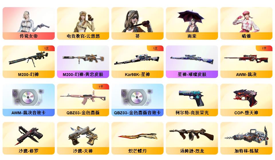 晨晨70VM200幻神+黄忠/98K星神璀璨/传说女帝云悠悠晴雅雨棠/传说辉光6音效卡/雷神宠儿
