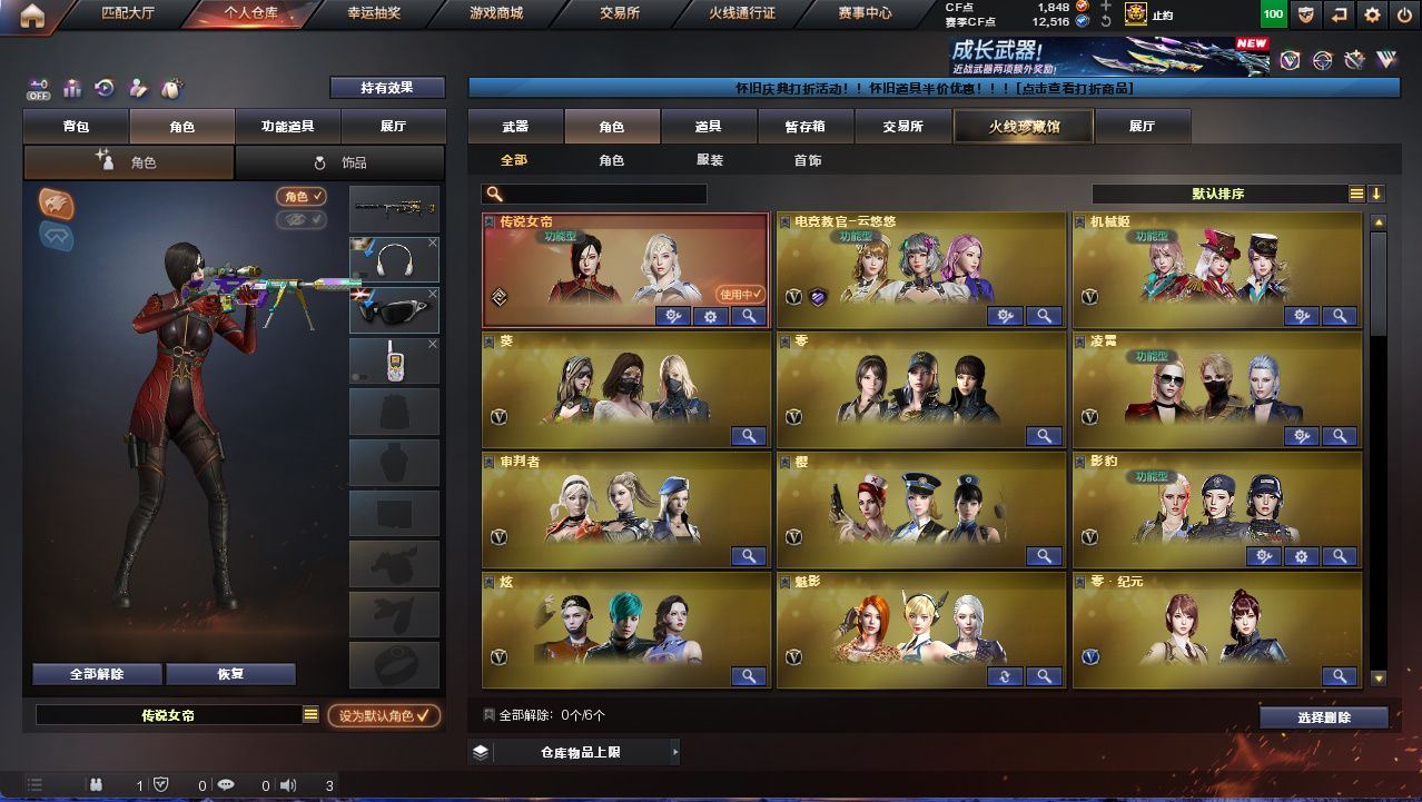 【传说女帝】【幻神+巅峰荣耀+宠儿+幻神音效卡+m200竞技荣光】【星神】【传说圣谕】【2usp雷暴】【cop堕天神】【柯尔特冠军之特】【白虎+暗星】【金色蔷薇+冠军之薇】【VSk94金蚀】【裁决+裁决音效卡】【4房电竞教官云悠悠+4房影豹+4房王者葵貂蝉+4房王者瞳闭月羞花+4房灵狐者职业经理】【1盘龙+2炼狱+6烈龙】【雷神+AK-47-雷神/雷神-传奇N9/雷神-荣耀之魄/雷神-虎将/雷神-耀金皮肤/雷神-暗月/雷神-烈虎皮肤/雷神-能量核心/雷神-星空+雷神音效卡】【天龙+AWM-天龙-传奇白鲨/天龙-CFSTAR/天龙-秘银/天龙-能量核心】【2毁灭+巴雷特-毁灭-CFPL冠军/毁灭-星空/毁灭-荣耀之怒/毁灭耀金皮肤/毁灭-暗月+毁灭音效卡】【2极光+极光-能量核心】【黑骑士耀金皮肤死神-秘银天启-暗月/战神-流金岁月皮肤/战神-紫绶金章皮肤/战神-粉色甜心皮肤/修罗-星空/修罗-CFSTAR/修罗-能量核心/天神-暗月/屠龙-荣耀世冠AG/屠龙-荣耀之锋】【M4A1-黑骑士音效卡/AK47-火麒麟音效卡/炼狱-百战金芒-庆典舞曲音效卡】【M4A1-雷神(4)/荣耀世冠-雷神/M4A1-死神(3)/M4A1-黑龙(3)/M4A1-龙血(2)/M4A1-千变/M4A1-黑骑士(6)/M4A1-武圣(2)/M4A1-夜魔/M4A1-幻灵/M4A1-雷霆(2)/M4A1-猎神/M4A1-玫瑰精灵/王者之魄-觉醒版(2)/王者冰魄-觉醒版】【AK12-天启(2)/AK47-火麒麟(7)/AK47-无影/AK47-雷暴/AK47-黑鲨(2)/AK47-黑武士/AK-47-猩红传说(8)/AK47-机械迷城/AK47-B-战士/AK47-B-战神/AN94-超新星/QBZ03-天罚/王者之心-觉醒版/QBZ-03-王者蔷薇-觉醒版】;USP-雷暴,柯尔特-冠军之特,Knife-冠军之刃,传说女帝,电竞教官-云悠悠,RPK-盘龙,QBZ03-金色蔷薇,