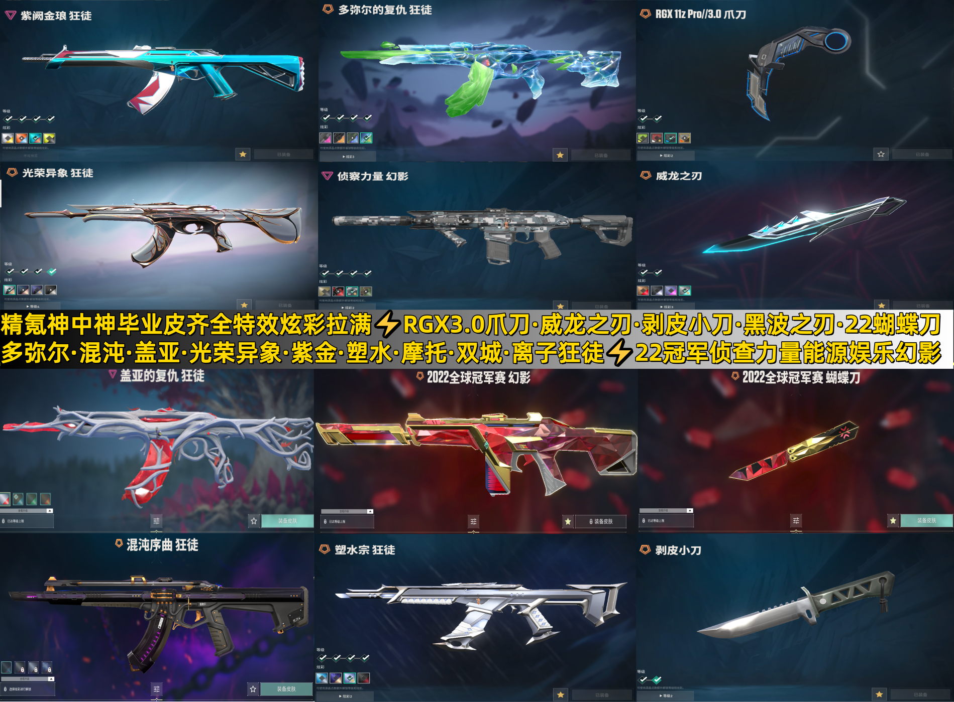 精氪毕业皮齐全特效炫彩拉满⚡显卡爪剥皮刀威龙刃蝴蝶刀黑波⚡多弥尔混沌盖亚光荣紫金狂徒22娱乐侦查幻影