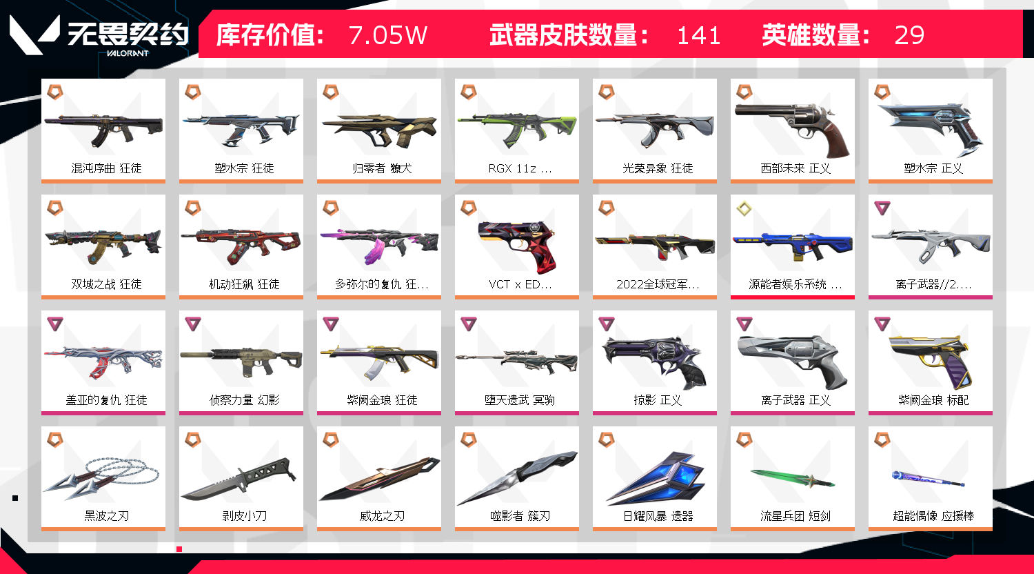 • 武器皮肤数量: 141