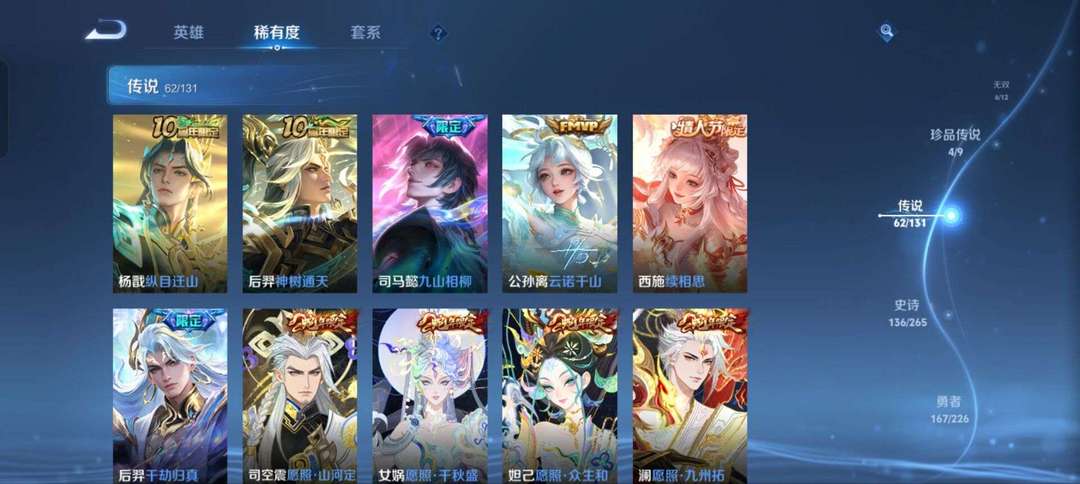 【非沄直接上号】极品V10★三历史国标★430皮★六典藏★诸葛亮新典藏★虎年五限定★鸣剑戈影★活力突击️★多限定
