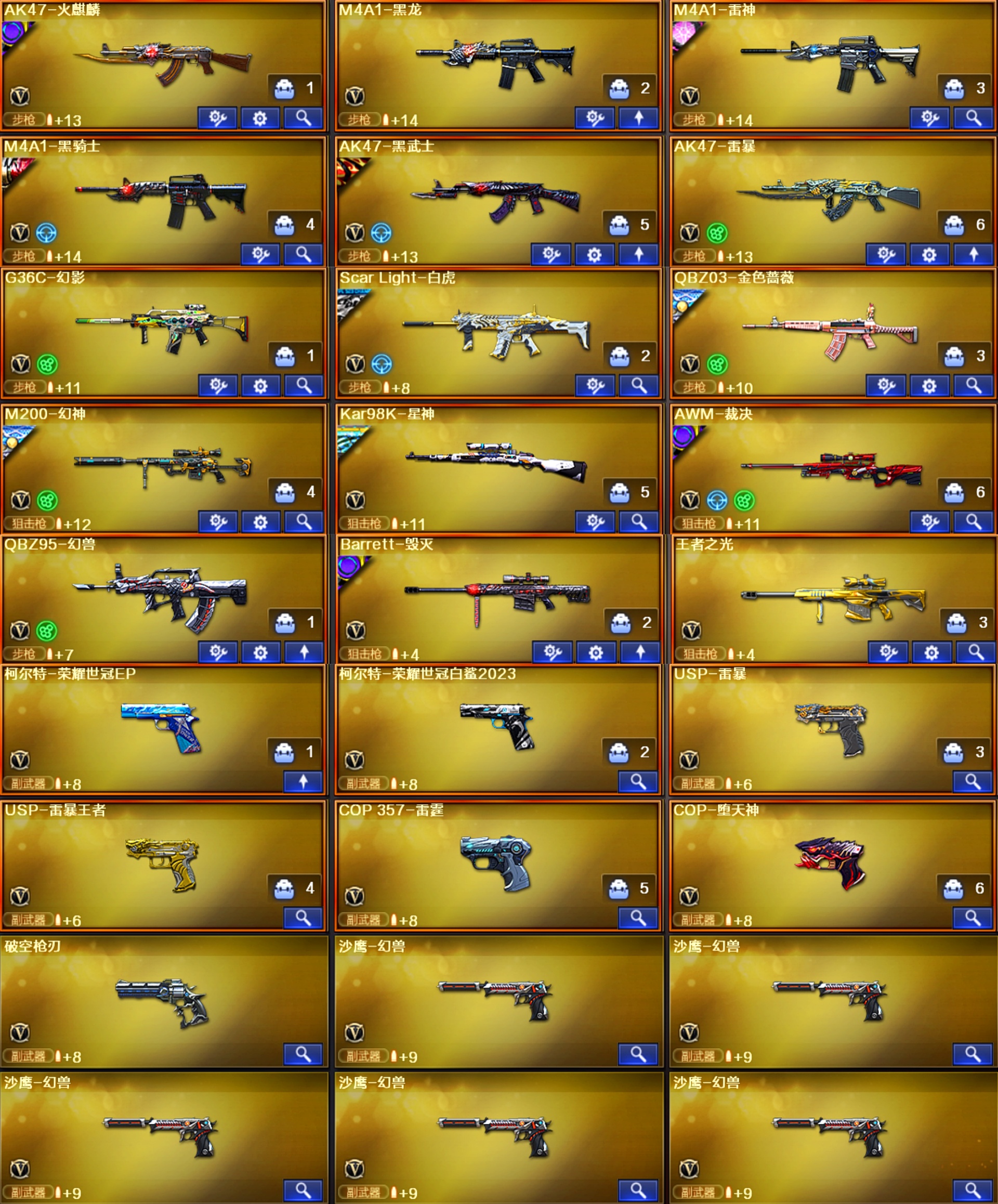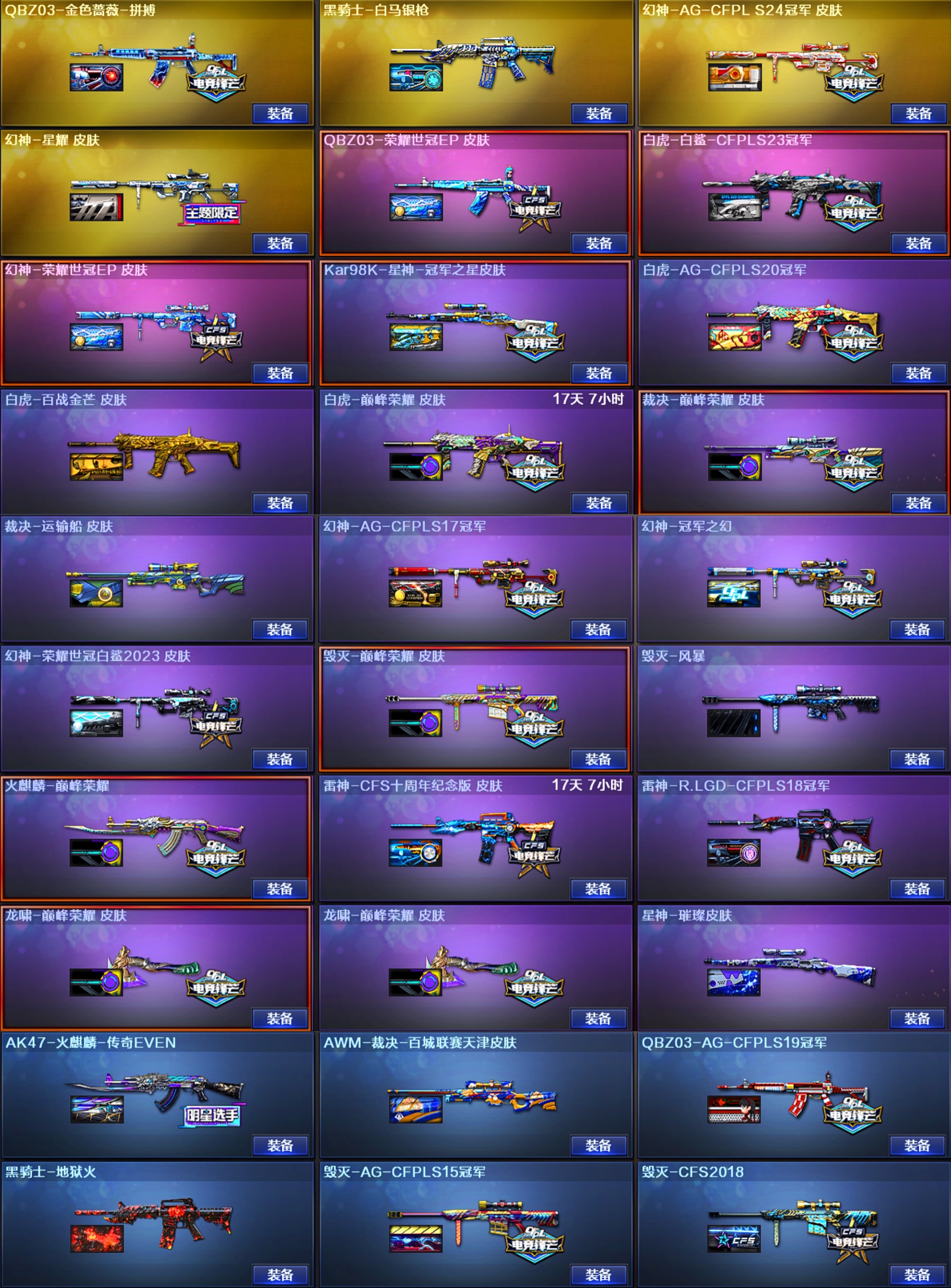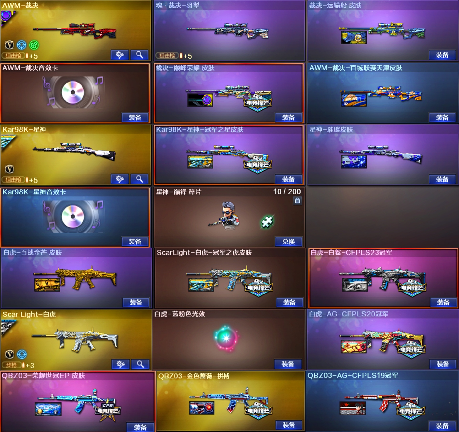 单ID晖 幻兽X5幻影♥幻神7皮EP全套白鲨AG♥裁决音效卡3皮巅峰荣耀♥白虎4皮冠军白鲨蔷薇ep