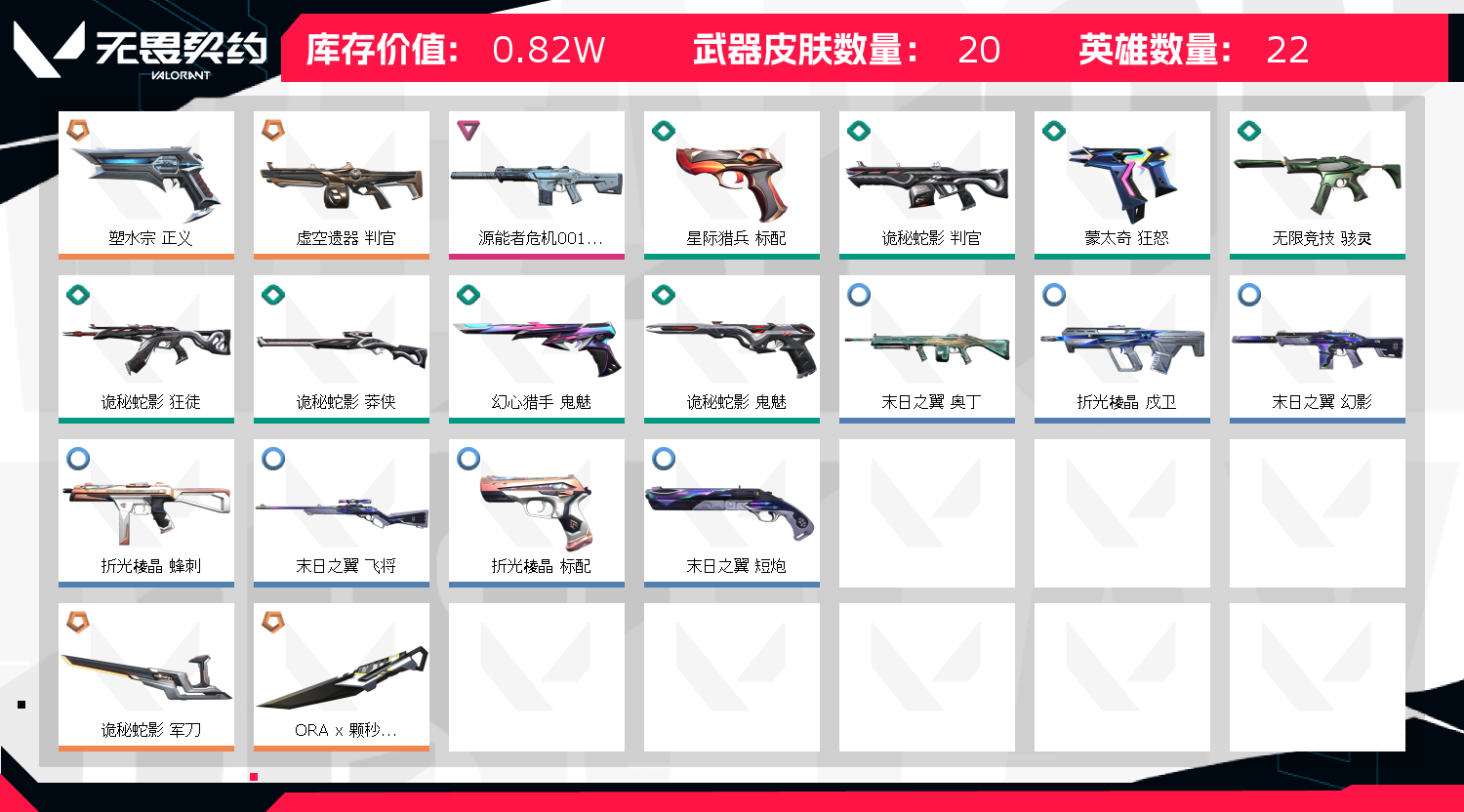 • 武器皮肤数量: 20