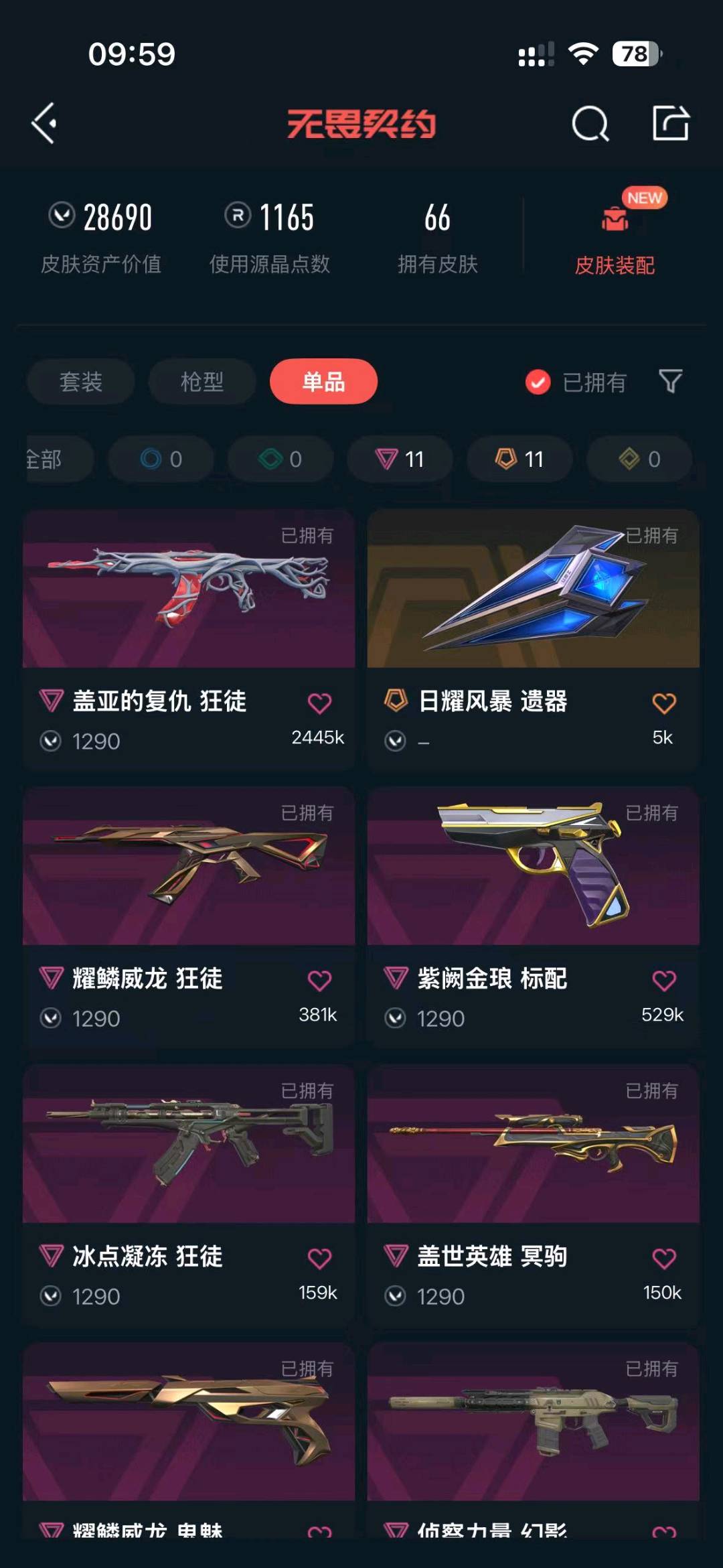 允许 英雄28 武器皮肤数量66;盖亚的复仇 狂徒,掠影 戍卫,掠影 狂徒,侦察力量 幻影,混沌序曲 狂徒,起源 冥驹,紫阙金琅 标配,