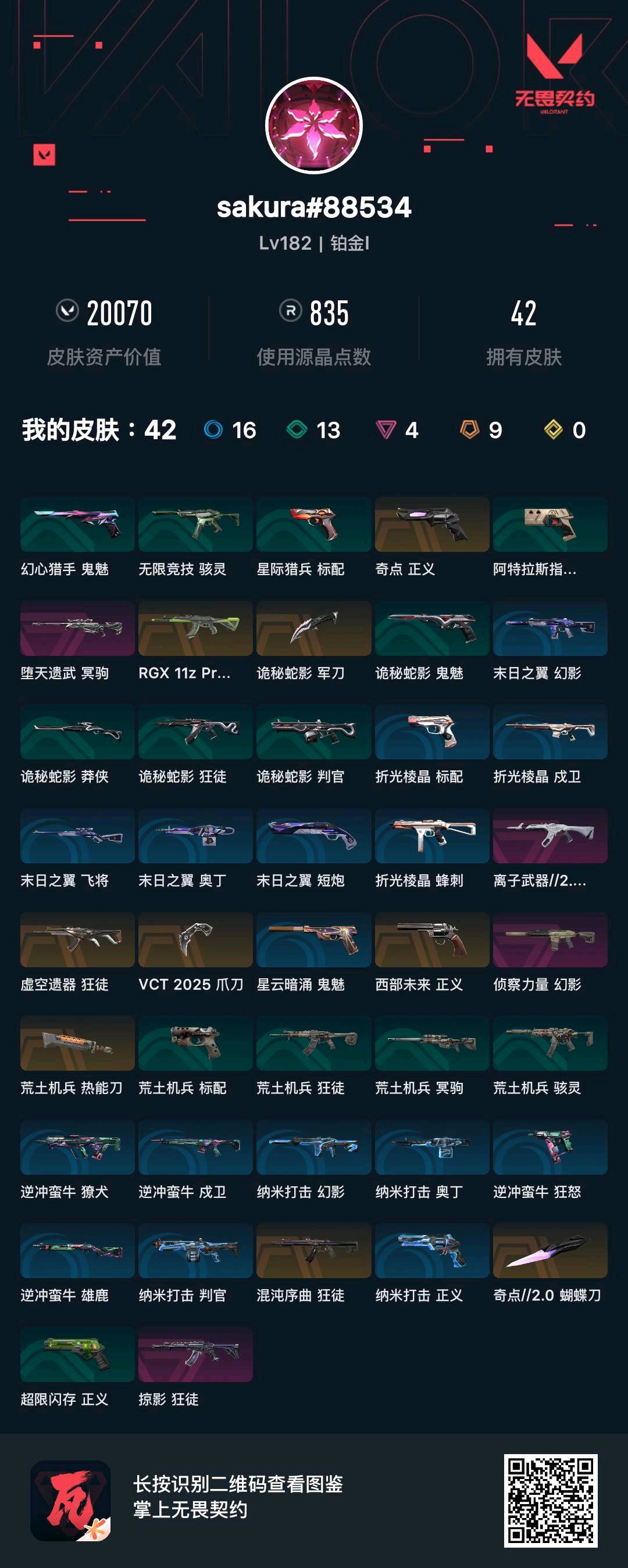 铂金1 众多热门枪皮 混沌 掠影 显卡 侦查 2025vct爪刀;