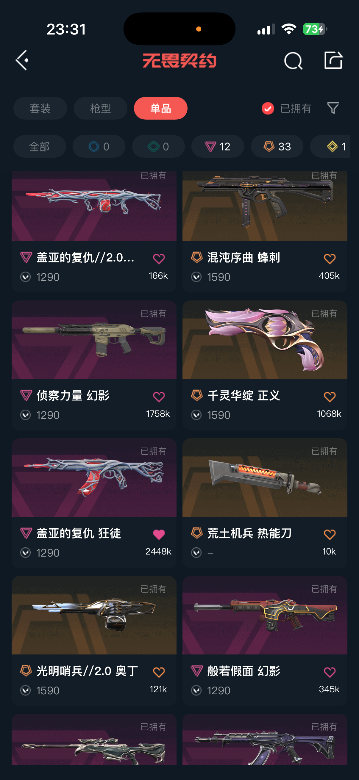 首页 > 租号大厅 > 无畏契约-wegame > wegame/wegame > 可排7.3w库所有枪都有特效皮 ♥奇点套♥创纪元套♥猫猫♥混沌♥紫金♥掠夺♥盖亚♥堕天ak♥侦查