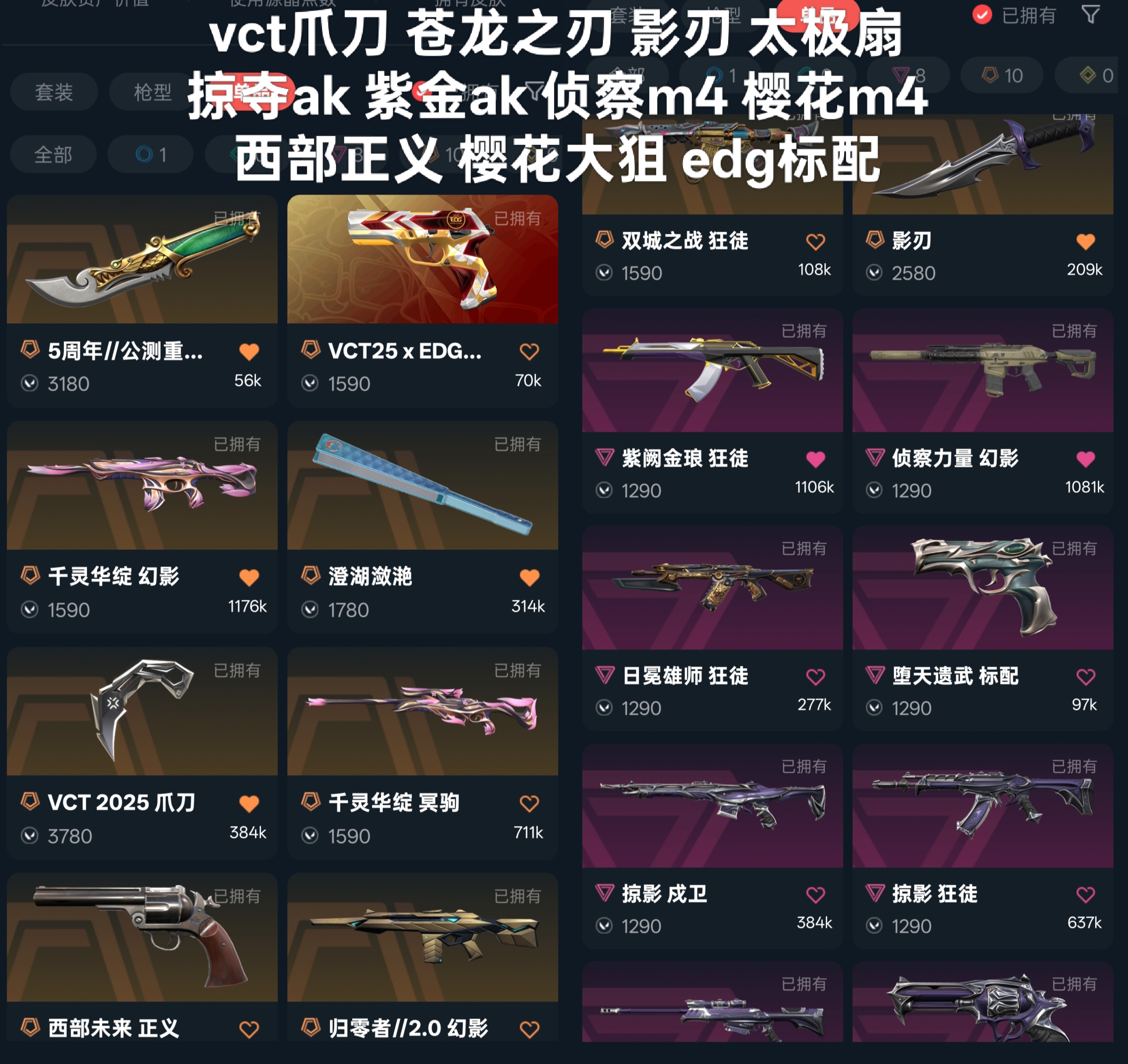 极品中库💖VCT爪刀 苍龙之刃 影刃💖狮子狂徒 紫金狂徒 侦察幻影 掠夺套💖黑铁青铜白银