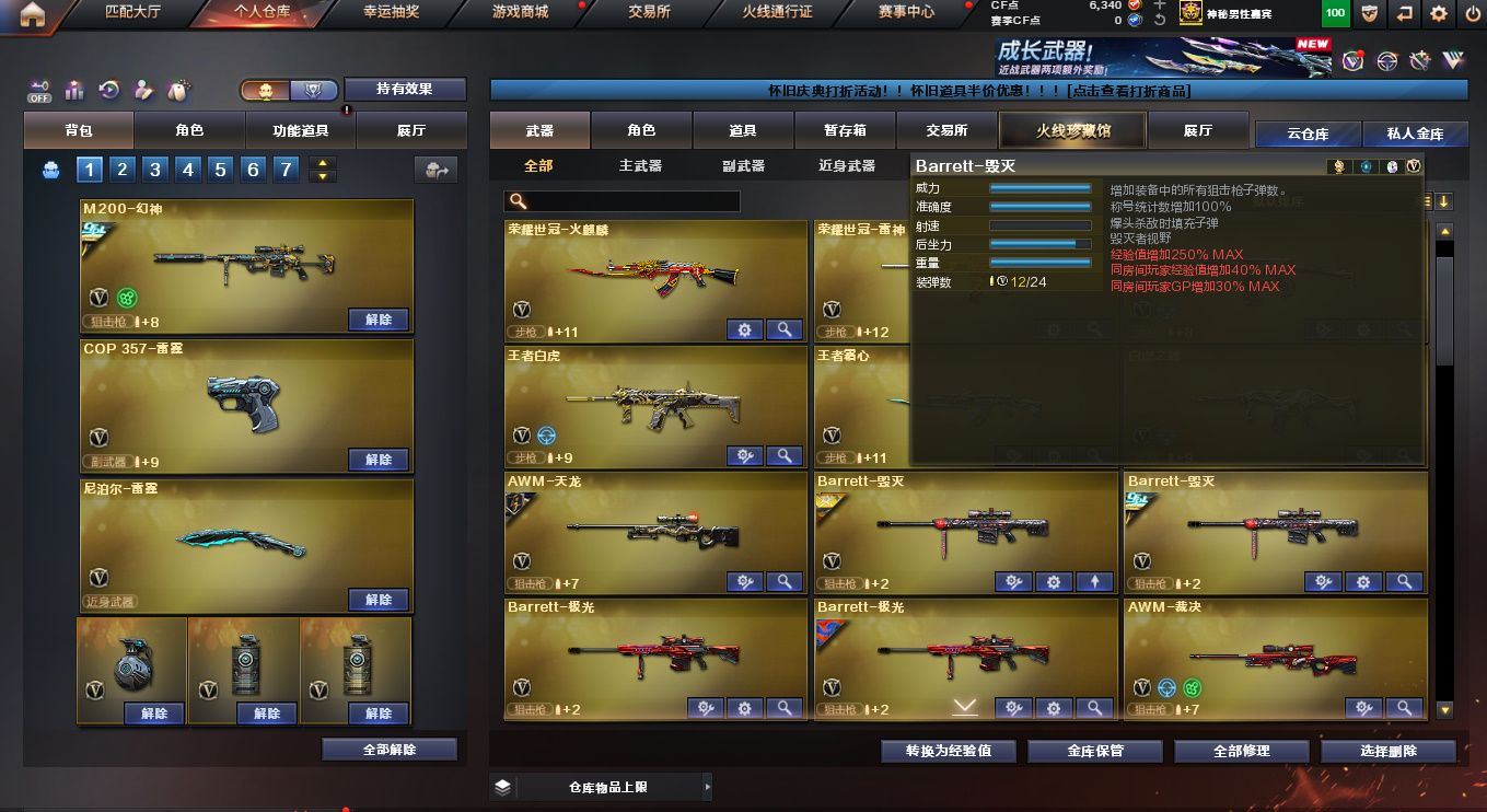 【M200-幻神(2)】【AWM-裁决】【王者之怒-觉醒版/王者之魄-觉醒版/王者之心-觉醒版】【沙鹰-修罗(3)】【雷霆之契/麒麟刺(7)/龙啸/王者之击-觉醒版(2)/屠龙(8)/雷霆之锋/麒麟刺-百战金芒/丛林匕首-玄豹】【RPK-盘龙/汤姆逊-烈龙(8)/加特林-炼狱(6)】【审判者/炫/零·纪元/王者-零/葵-阿尔法武装/雅典娜/零-水下丽影/灵狐者-黄金海岸/斯沃特-X/潘多拉-N】【超新星-悦享/王者之幻/王者之光(2)/王者之力(2)/王者之锋】【毁灭-星空/毁灭-荣耀之怒/毁灭耀金皮肤/极光-能量核心/AWM-天龙-传奇白鲨/天龙-CFSTAR/天龙-秘银/火麒麟-CFSTAR/火麒麟-AG/无影-暗月/AK47-黑武士-361/雷神-源计划2.0专属 皮肤/雷神-荣耀之魄/雷神-能量核心/雷神-斗鱼/黑龙-能量核心/M4A1-黑龙-361/修罗-CFSTAR/天神-暗月/屠龙-荣耀之锋】【炼狱-百战金芒-庆典舞曲音效卡】【Barrett-毁灭(3)/barrett-金色蔷薇(3)/Barrett-暗月传说/雷霆之怒/M4A1-雷神/M4A1-死神(2)/M4A1-黑龙(3)/M4A1-龙血(6)/M4A1-千变(2)/M4A1-黑骑士/M4A1-武圣(3)/M4A1-雷霆/M4A1-玫瑰精灵(3)/AK12-天启(2)/AK47-火麒麟(3)/AK47-无影/AK47-黑鲨(6)/AK47-黑武士(5)/AK-47-猩红传说/AN94-超新星(3)/QBZ03-金色蔷薇/9A91-烈火/AA-12-雷霆机械迷城-穹宇/Barrett-碧霄极光】;RPK-盘龙,QBZ03-金色蔷薇,M200-幻神,