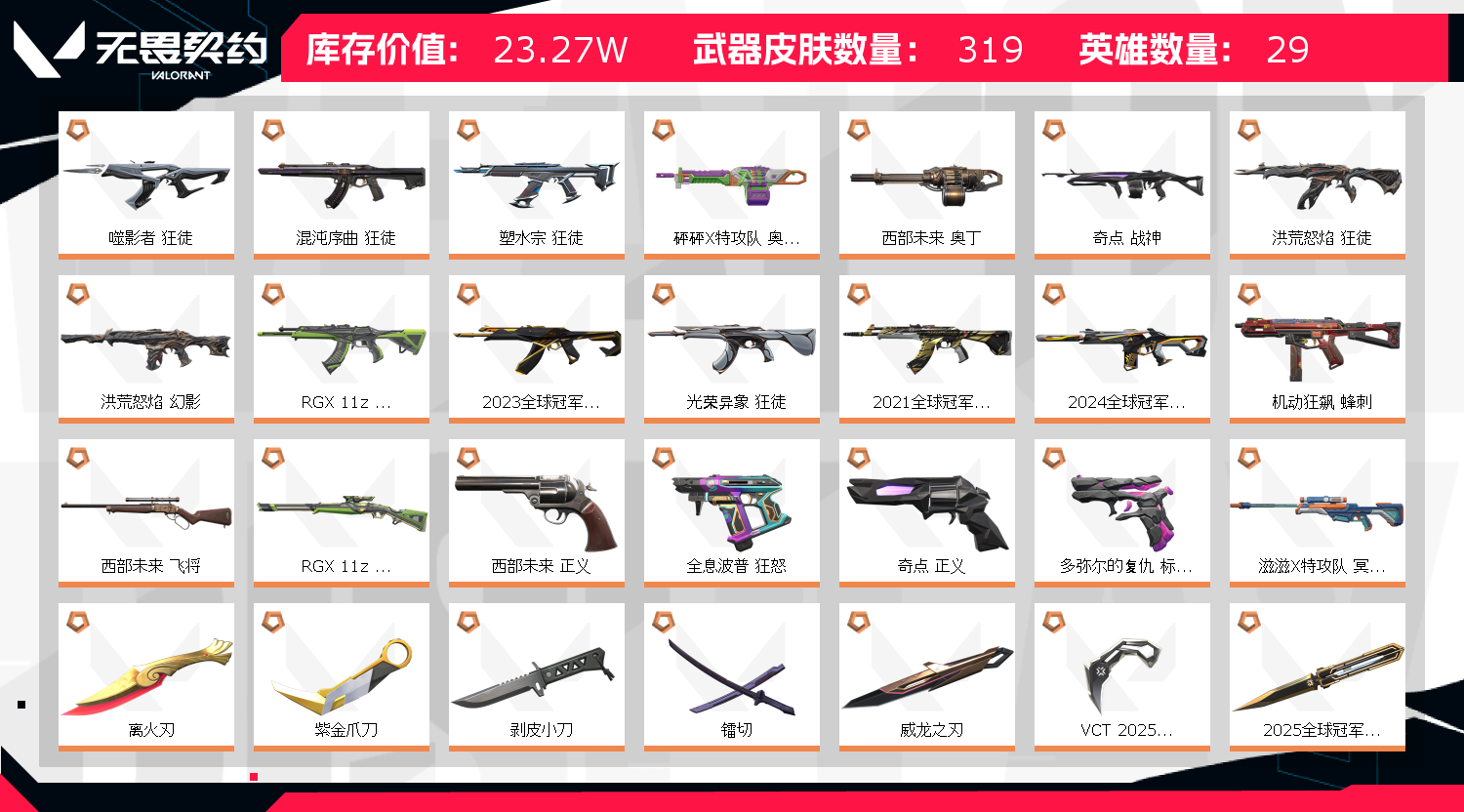 • 武器皮肤数量: 319