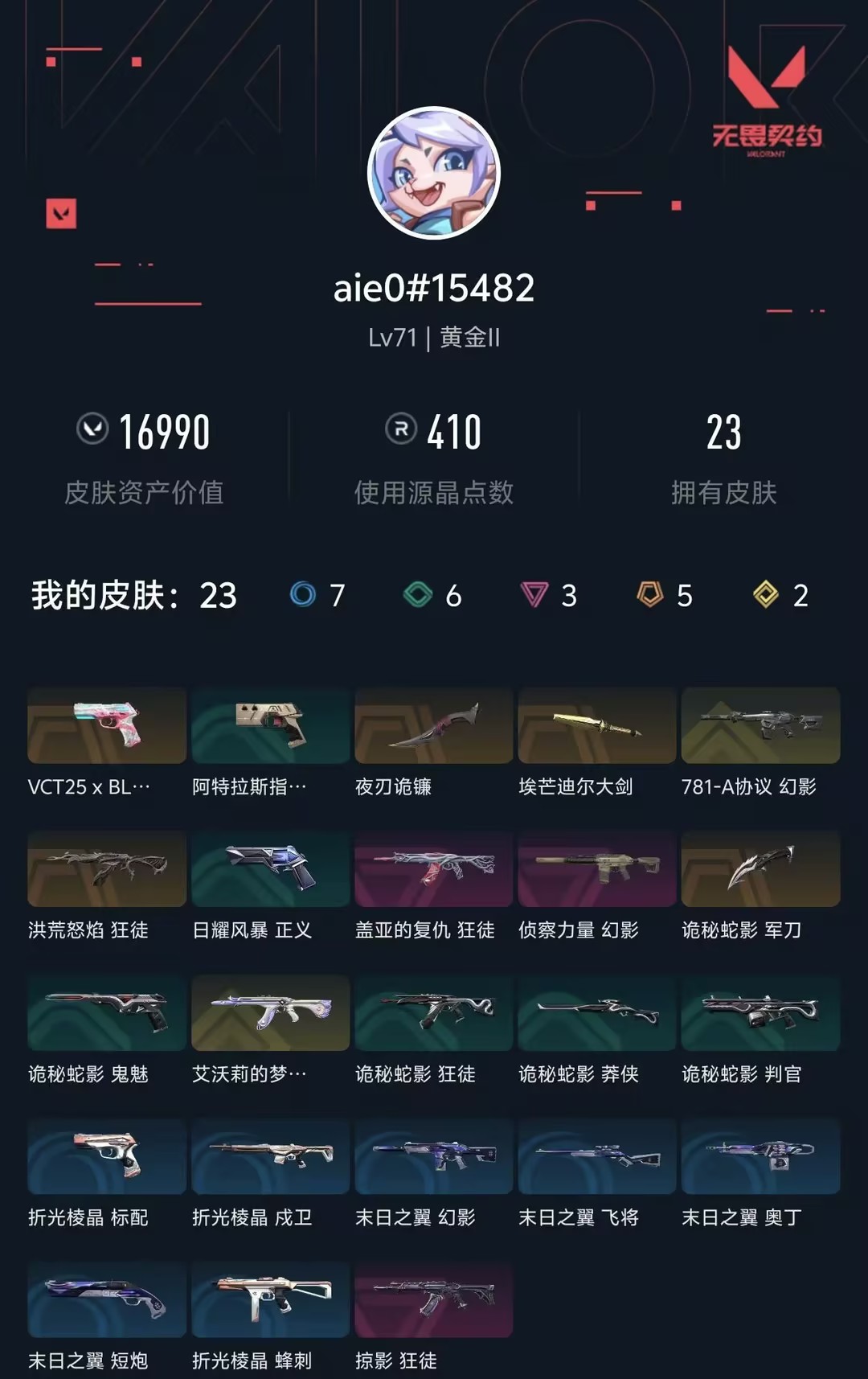 • 皮肤资产价值: 16990