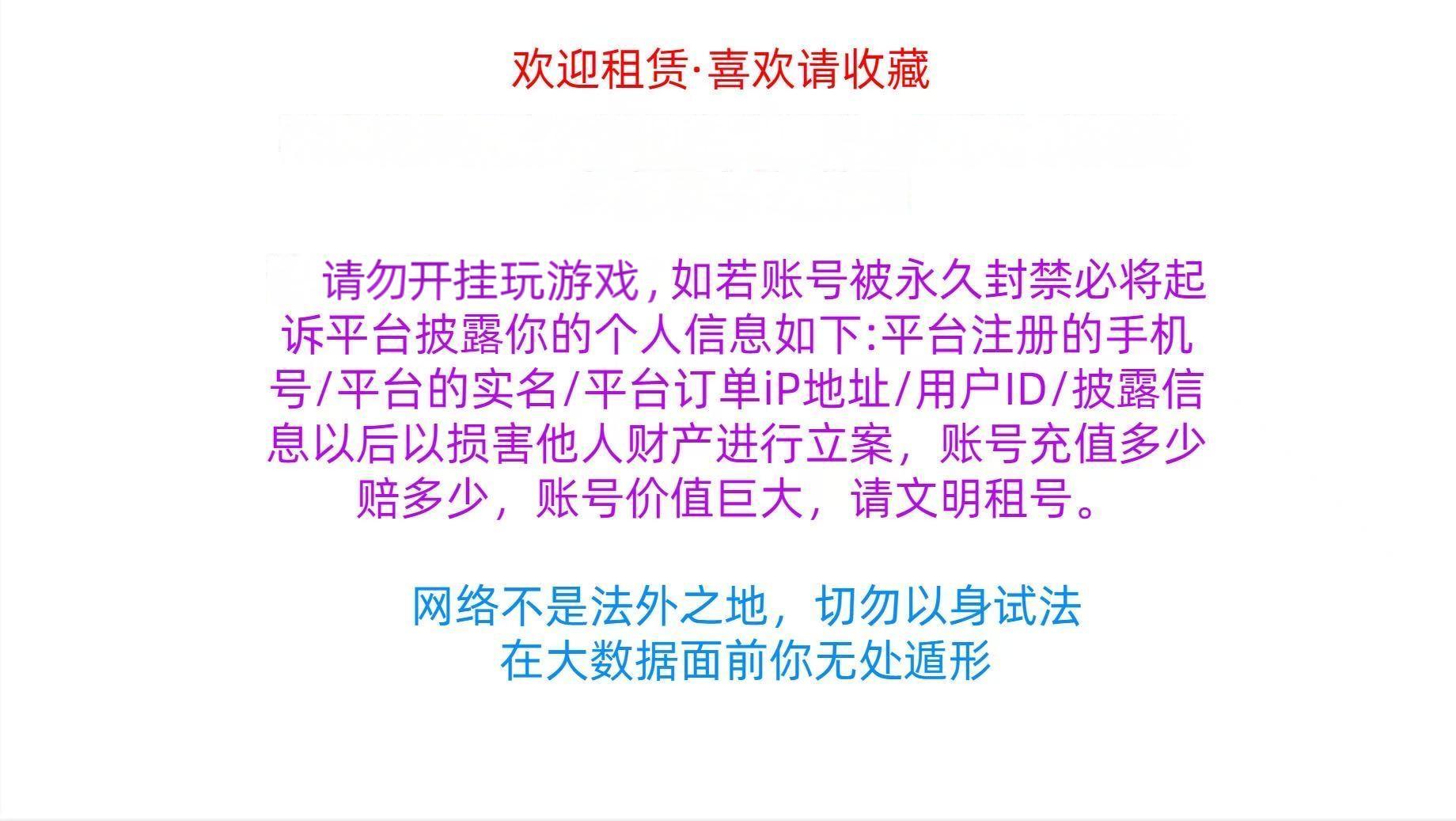 • 租号押金:0.0(订单结束后24小时退还)