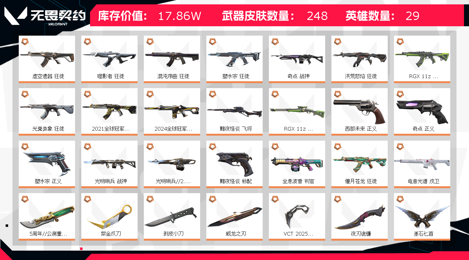 • 皮肤资产价值: 178650
