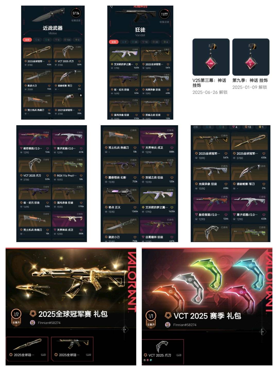 可排🔥V25+EP9四个神话挂饰🔥25冠VCT爪🔥猫猫纪元光荣双城混沌假面离子狮子10把AK