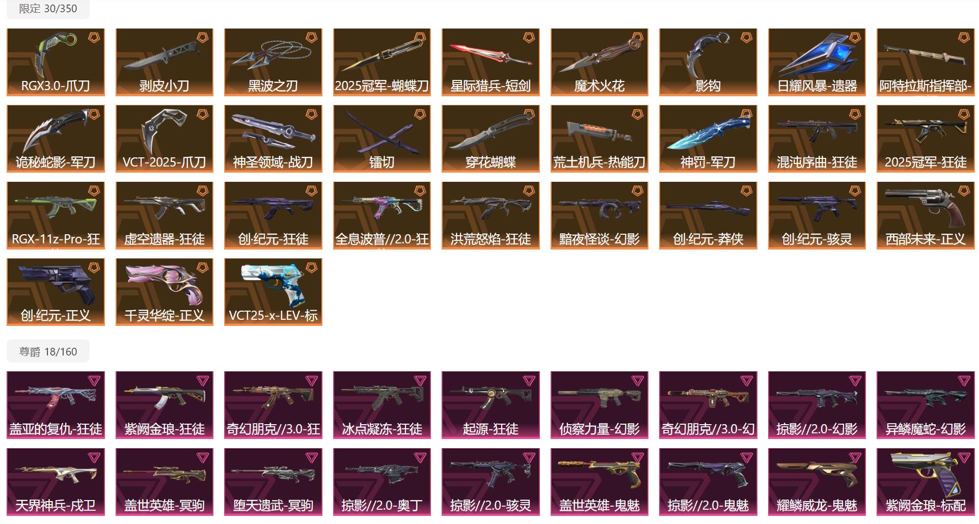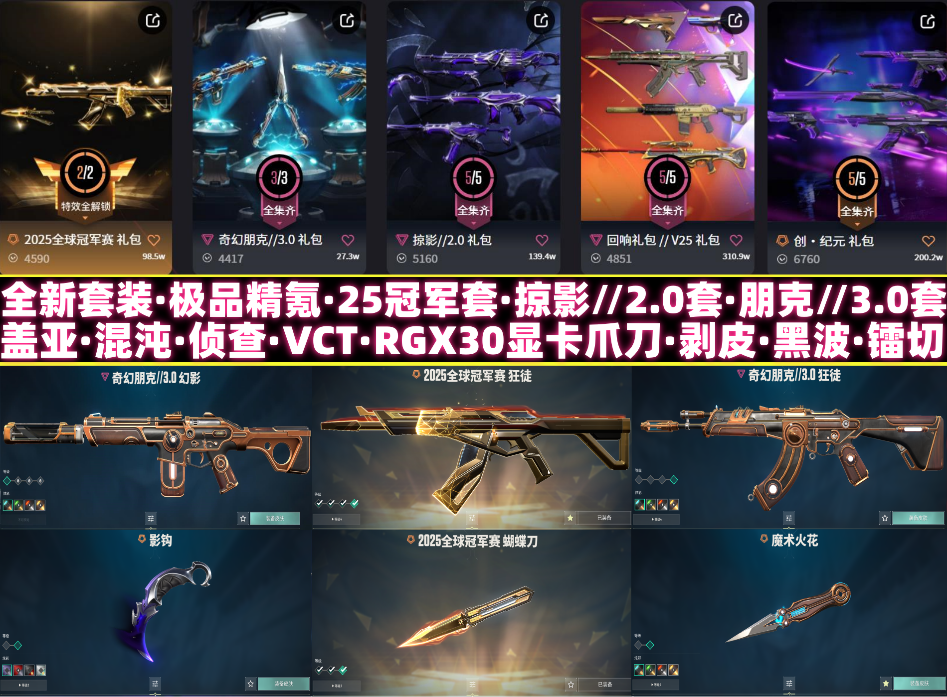 极品精氪✅25冠军套✅掠影2.0套✅朋克3.0套✅盖亚混沌侦查RGX显卡爪VCT爪刀剥皮黑波镭切影钩
