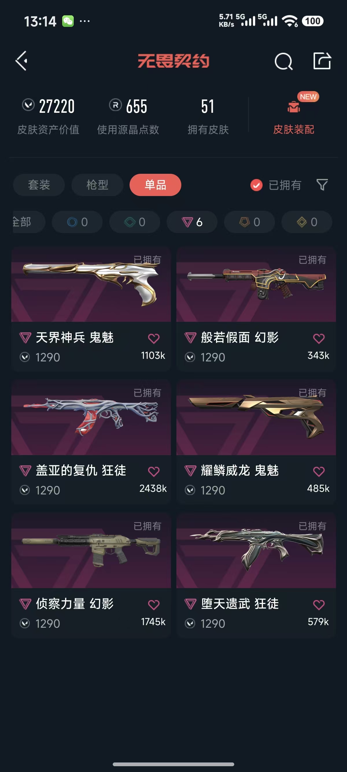 • 皮肤资产价值: 27220