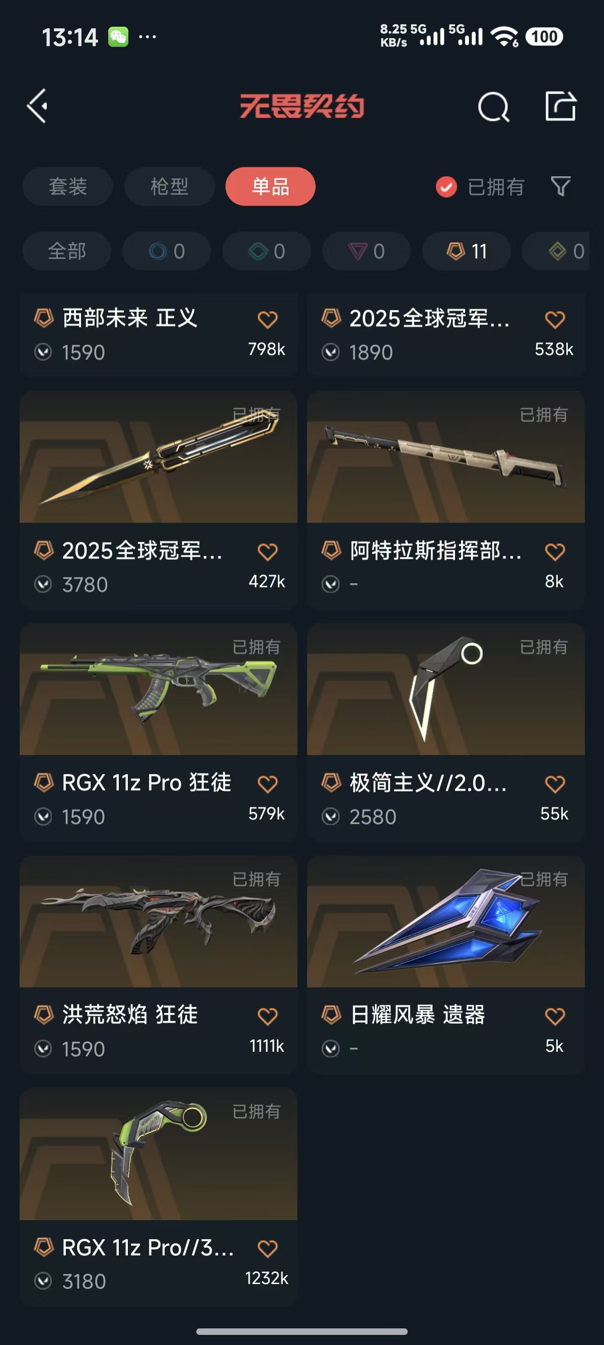 首页 > 租号大厅 > 无畏契约-wegame > wegame/wegame > 25冠军套装✨显卡爪刀✨显卡 流脓 弃王 盖亚狂徒✨侦察 般若幻影✨西部 塑水正义✨天界 威龙鬼魅
